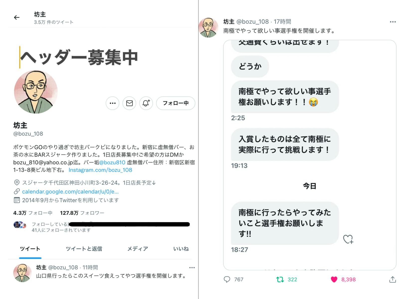 【追記】なんと、、Twitterで128万人フォロワーがいる坊主さん(超有名な大喜利アカウントです..!)が僕の南極ミッションを募集して下さりました..!🥺😭 是非そちらでも募集してるので、ご応募よろしくお願い致します🤲