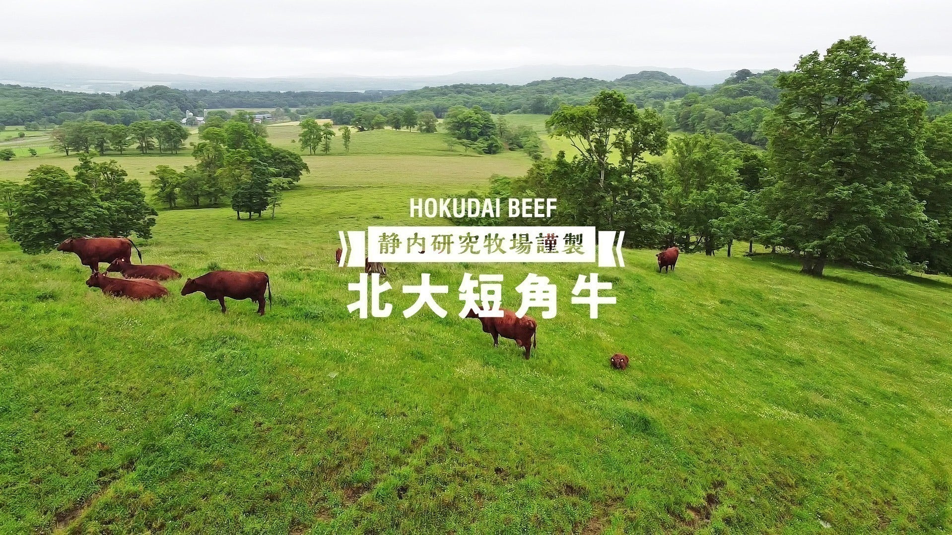 静内研究牧場では、土地が持つ力を生かして行う土地利用型家畜生産システムの研究を古くから続けています。牧場外部から持ち込む肥料や飼料を極力少なくした、持続可能な畜産により育てられた日本短角種牛を「北大短角牛」と名付け、年間12頭程度の限られた出荷頭数ではありますが、2021年から一般販売を開始しました。
