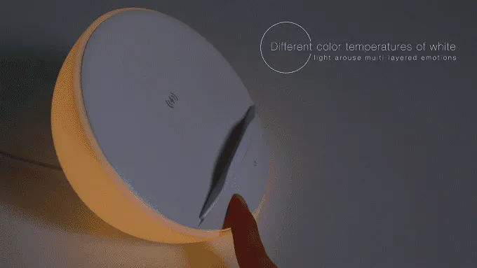 全体のデザインコンセプトは日時計から来ています。この製品のデザインはコロナ(光冠)に似ています。太陽はすべての人類に光をもたらすものですが、光冠は暗闇を照らすことができます。また、スマホスタンドとしても使用できますので、ご家庭にひとつ置いていただき、生活をより明るくしてみませんか。