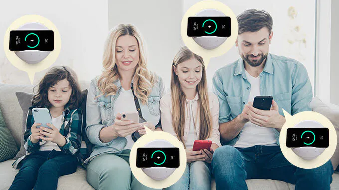 「Qi(チー)」に対応しているスマホなら、【Aipower KR02】だけで家族みんなの充電に対応できます。