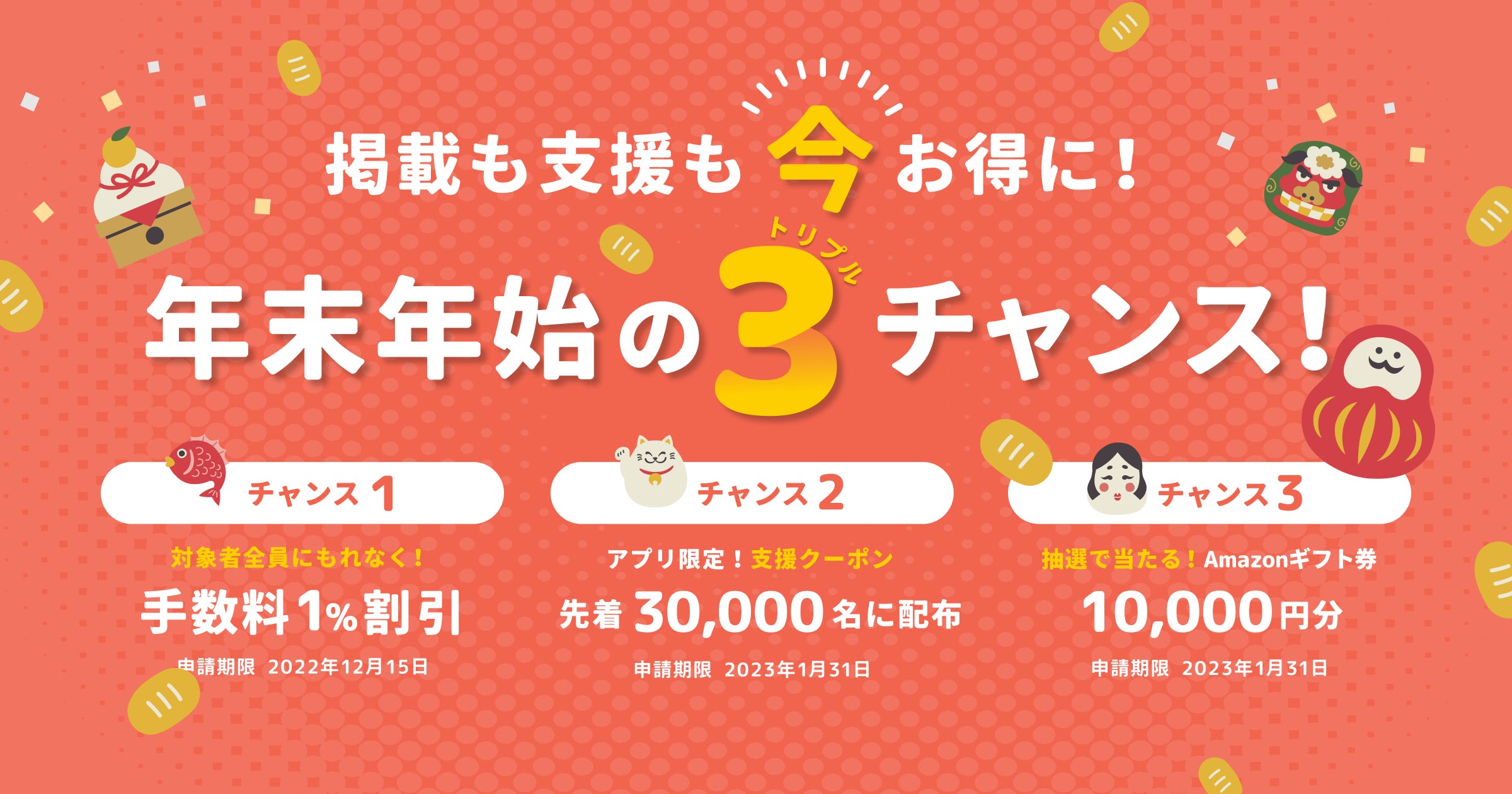 支援キャンペーン対象期間:2022年11月 9日(水)11:00 ~ 2023年1月31日(火) 23:59 まで