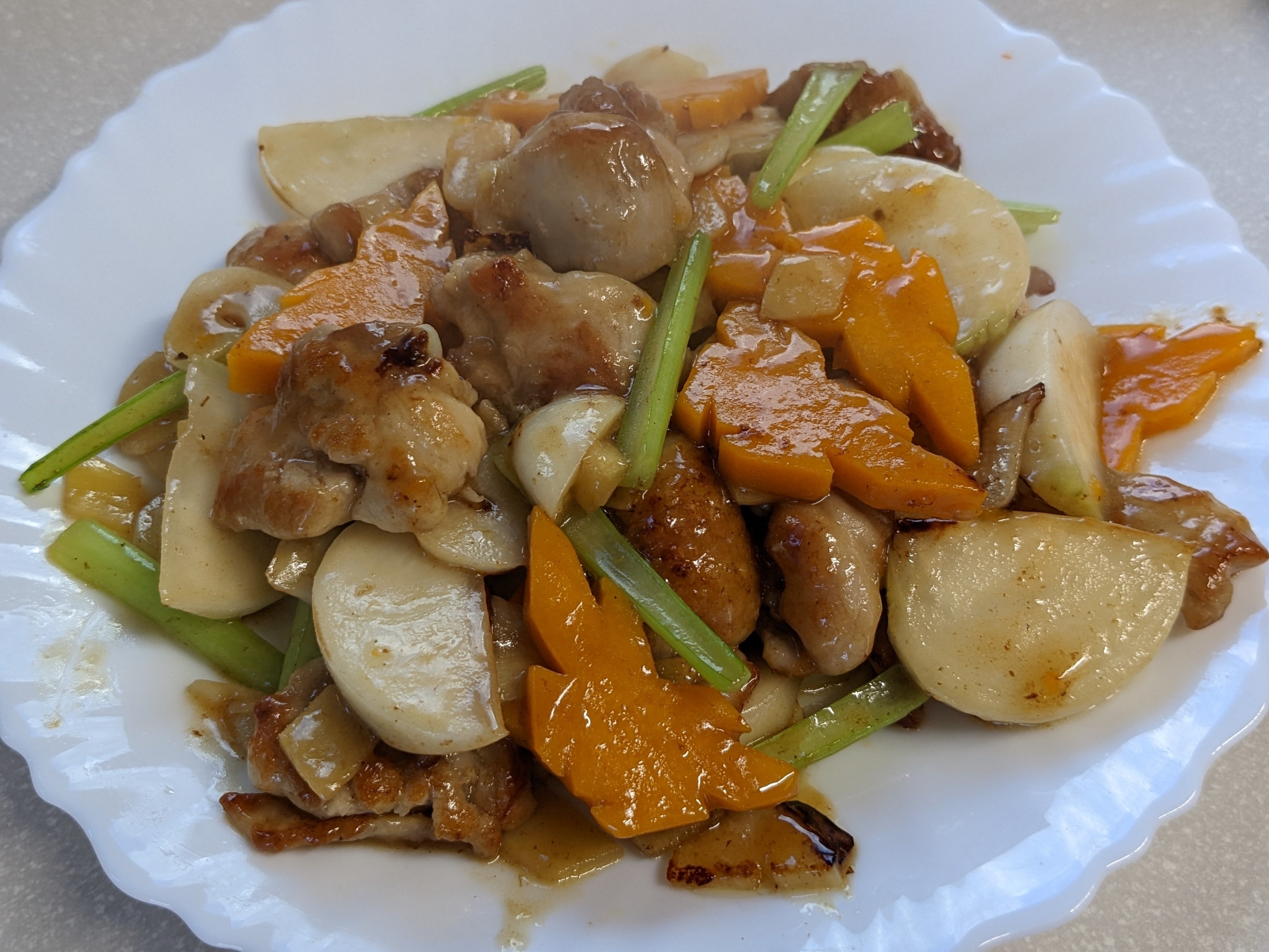 葉付きこかぶと鶏肉炒め