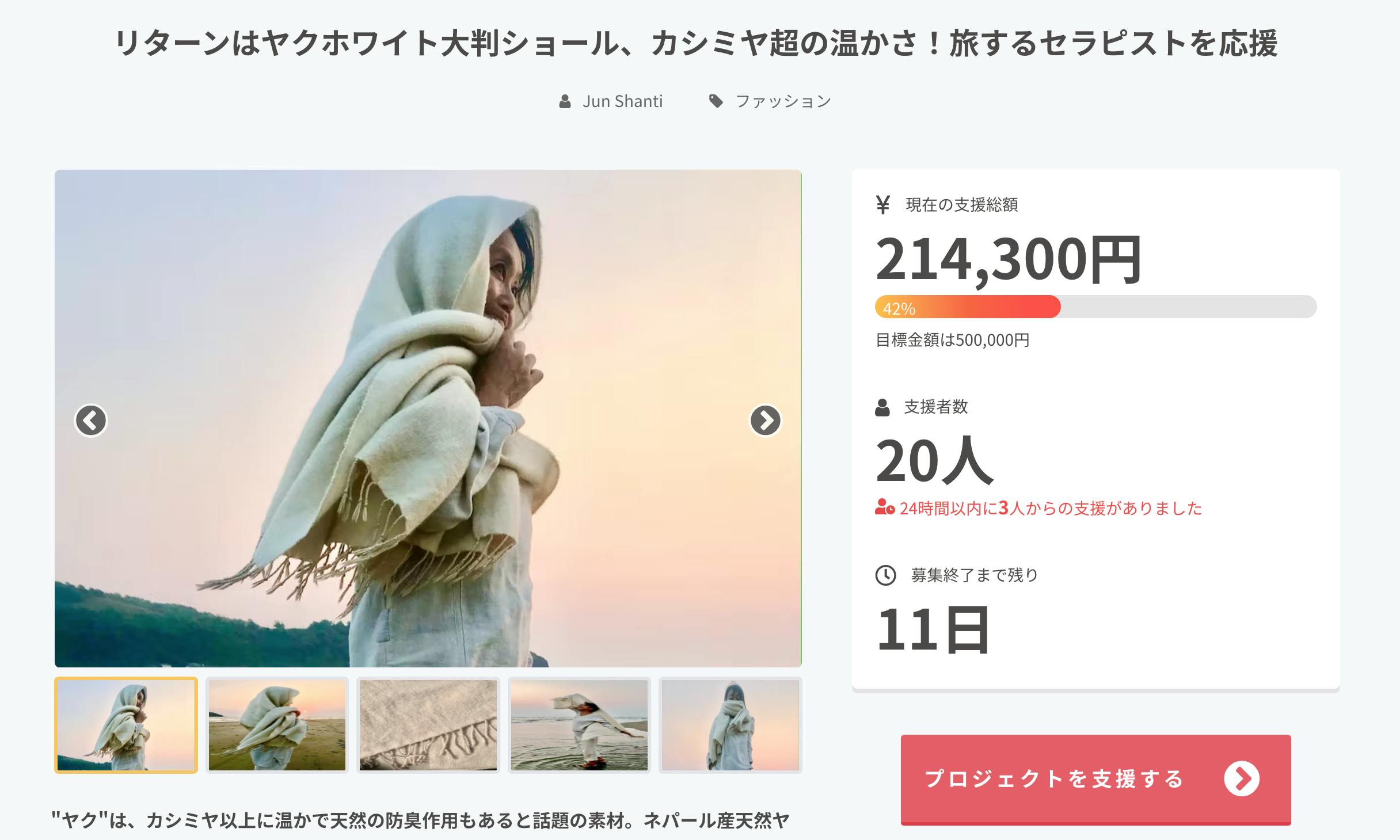 「前回は色々な事が重なってしまい大変だったと思います。今回新たにヤクのストールを手にする機会を設けてくださりありがとうございます。楽しみです。」