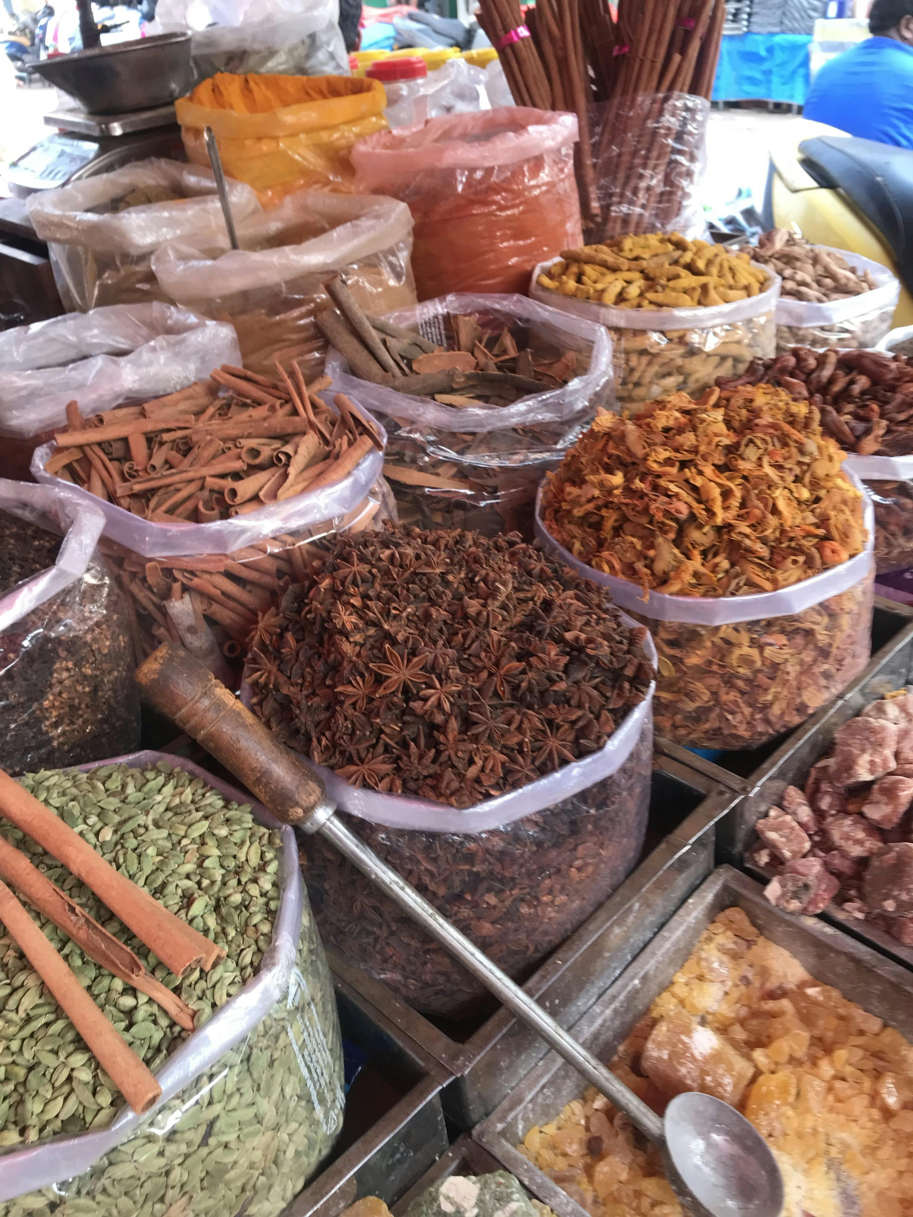 (写真は、明日行く予定の、ローカル市場のスパイスショップです。)