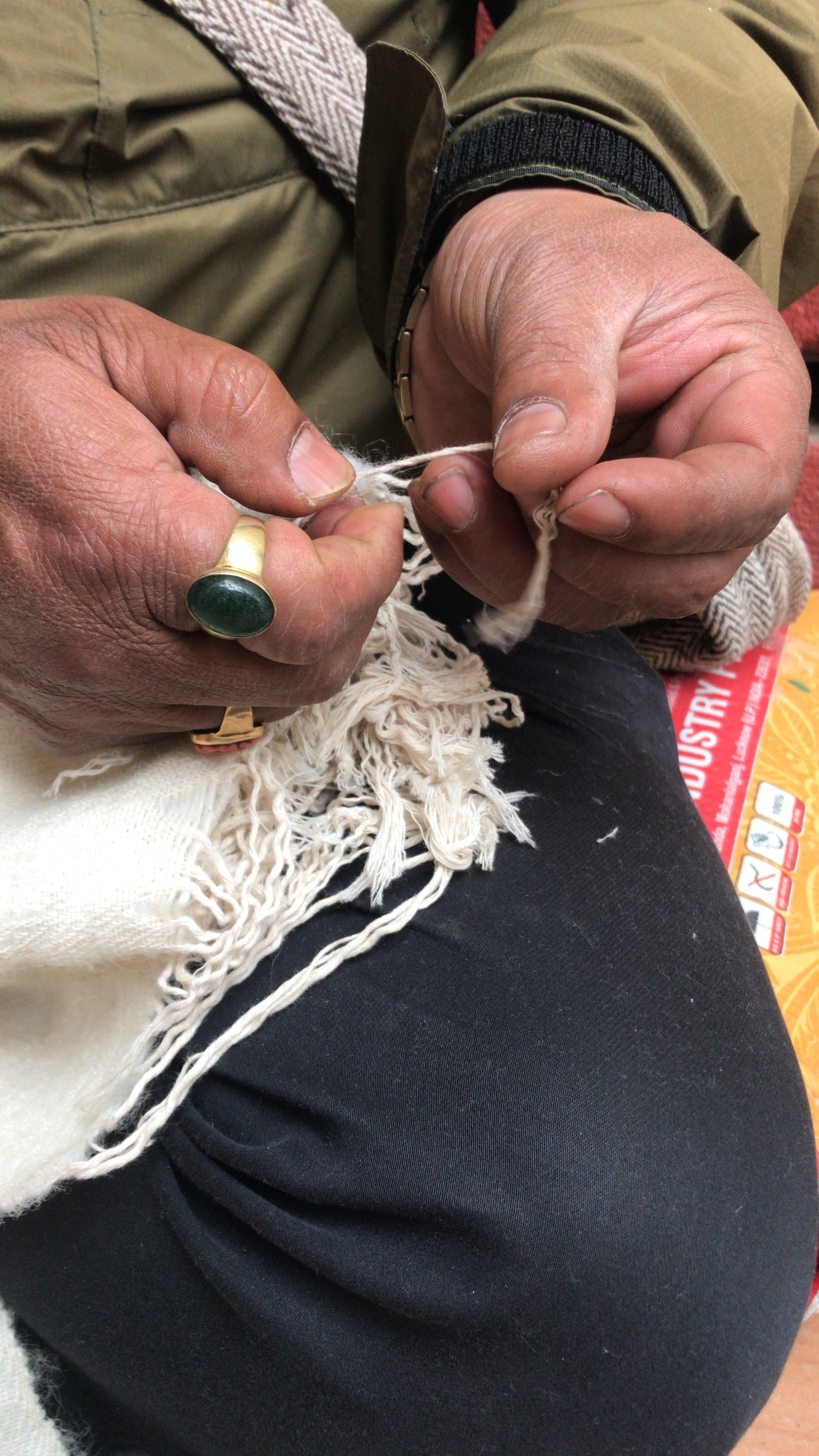そして、全て順調ならこんなに自らの手で触れることがなかったはずのストールを自らの手で解いて、安心できる手に託して編み上げもらい、自分の手で受け取る人を思いながらふさを仕上げられる今。
