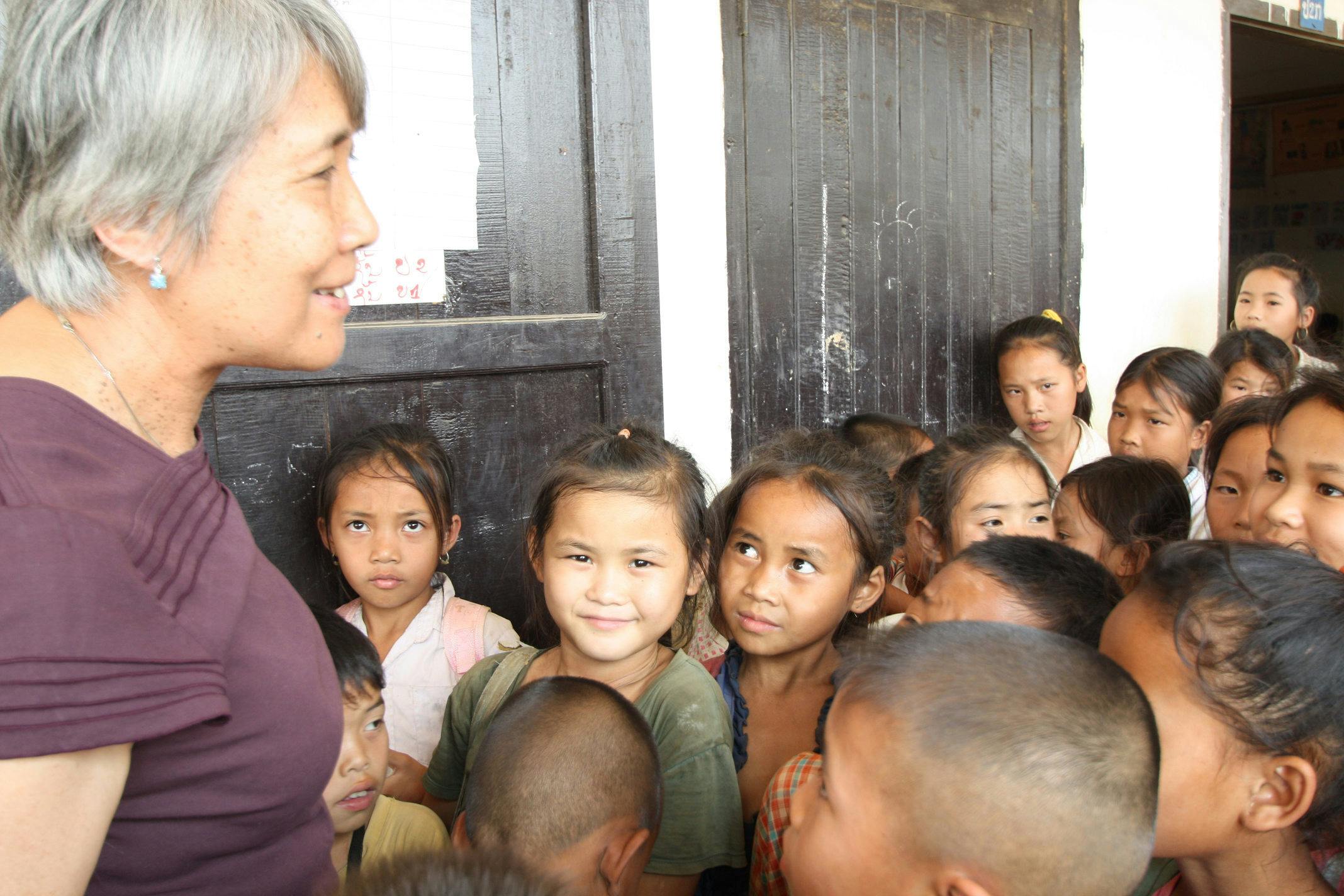私たちの活動は、1982 年にラオスの子どもたちへ日本の絵本を送るところから始まりました。私は1974年に留学生として来日し、その後日本で子育てをする中で、幼い娘が楽しそうに絵本を読む姿を目にし、本に触れる機会のない故郷ラオスの子どもたちのことを想い、行動を起こしました。