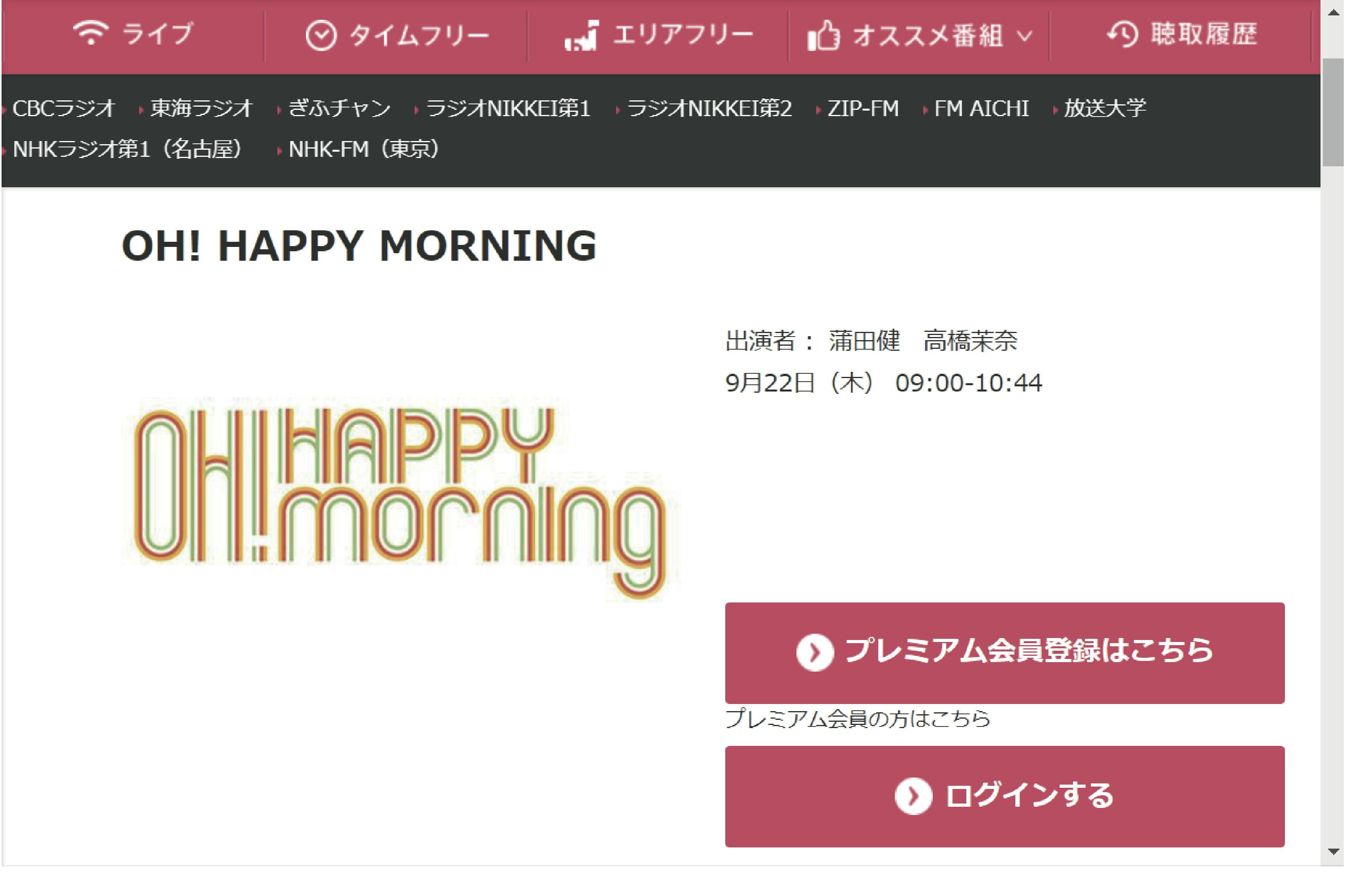 9月22日(木)JFN系列FMラジオ OH! HAPPY MORNING