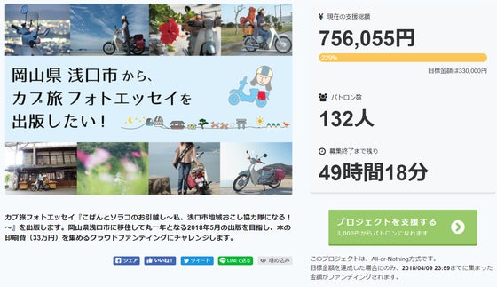 クラウドファンディングのホーム画面が、「残り●日」から、「残り●時間●分」になっていることに気づき、いよいよ終わるんだなーという気持ちです!