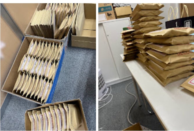 皆様ご無沙汰しております。ワールドワンダーツアー製作委員会の高橋です。有難いことに初回製作分をクラファンのご支援総数が超えてしまい、間に合わせるべく増産体制を整え、梱包等の作業をし無事発送までたどり着くことができました。梱包や発送を担っていただいている銀杏企画Ⅱさんも、丁寧にご対応いただき、五月雨式に届ける送付状や梱包材、発送手続きなどに対応いただき、就労支援施設で働く皆様もやりがいをもって働いていただけていると聞き、とてもうれしく思っております。12月中ご発送の予定でしたが、できればクリスマスに間に合えば、、と思い進めております。早い方はクリスマス遅くとも26日ぐらいまでには全部つく予定です。万が一お手元に届かないなどございましたら教えていただけると幸いです。冬休みぜひ家族やお友達と遊んでください!