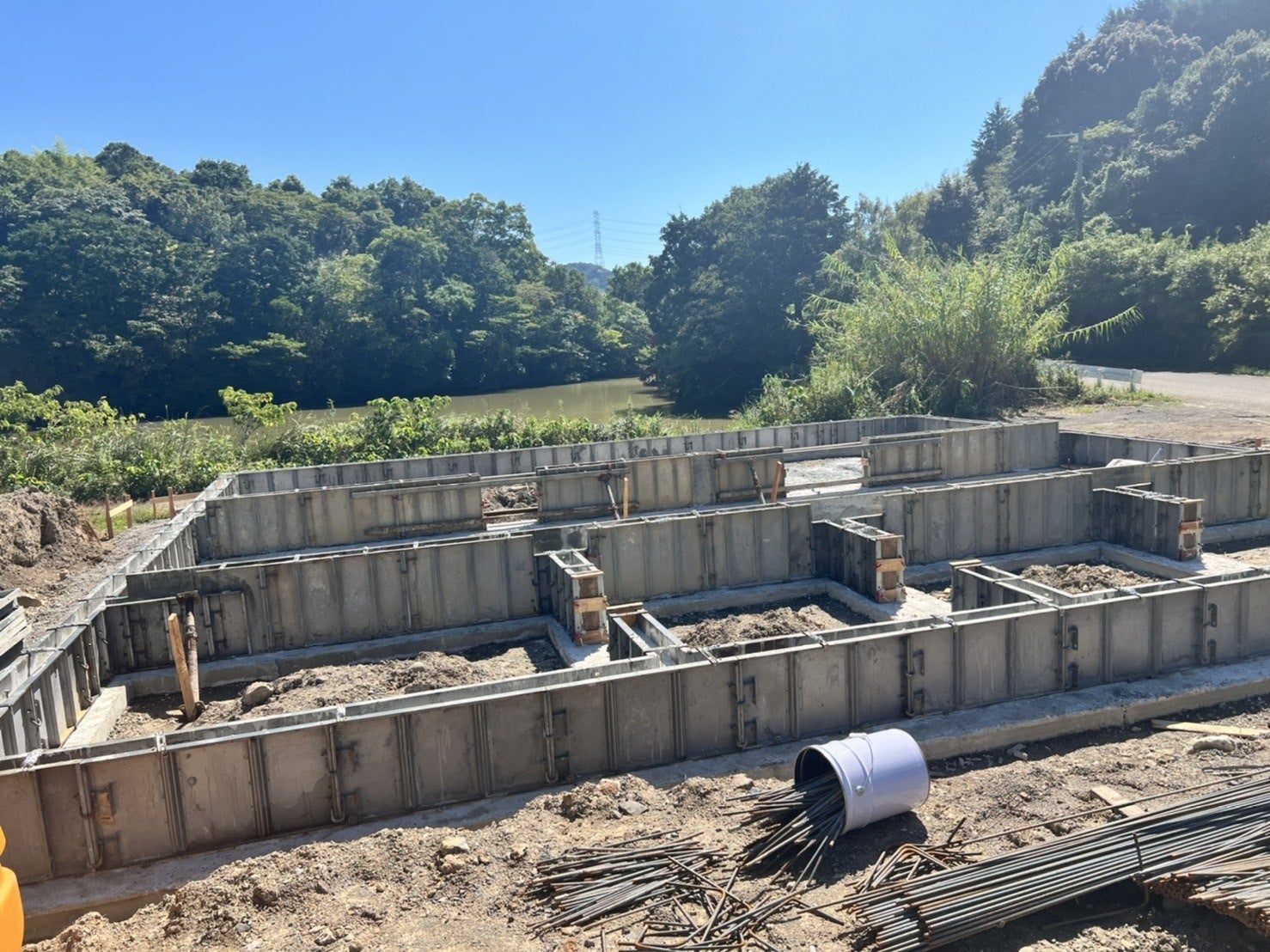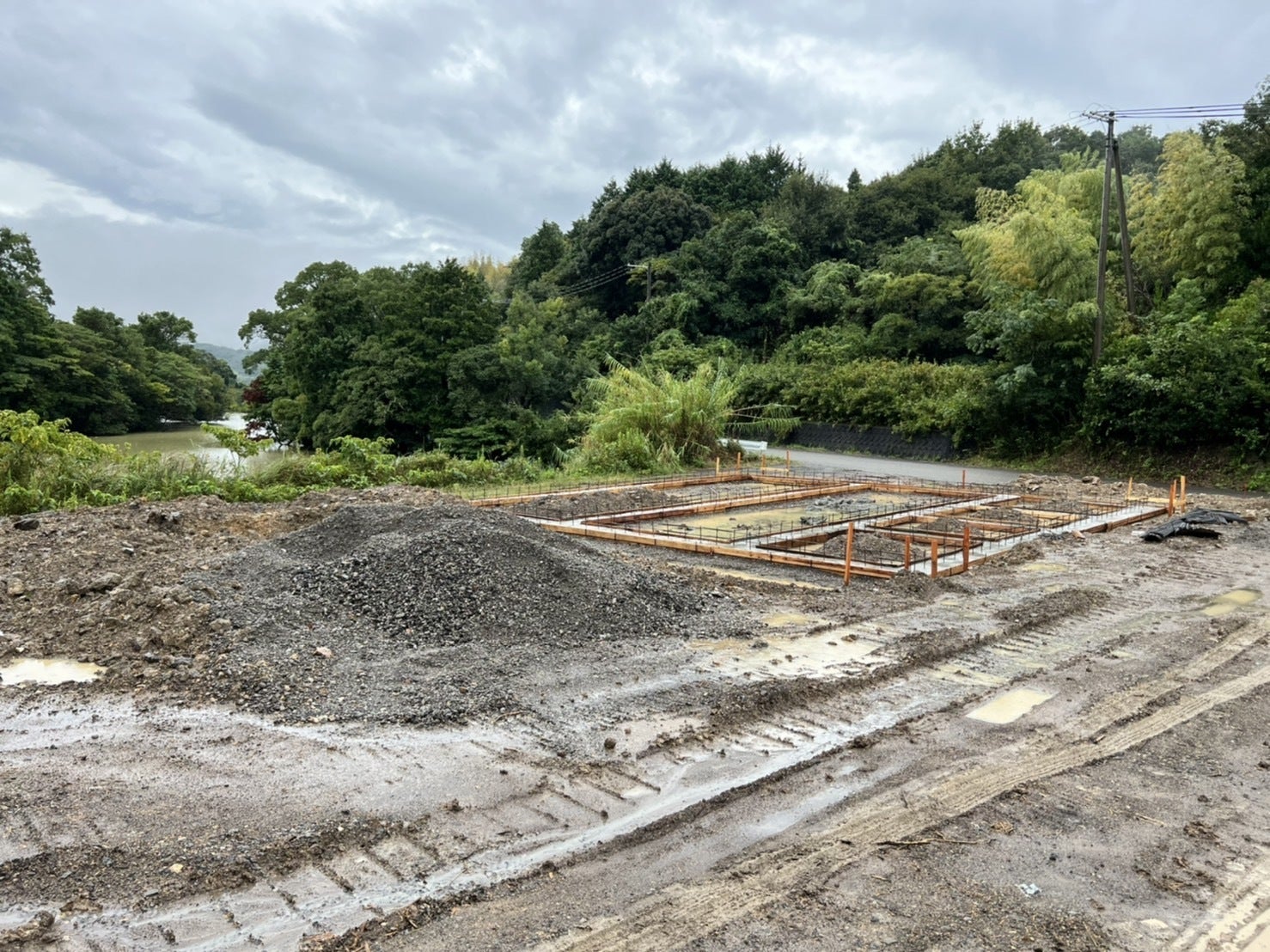 本日は小雨が降ったり止んだりの現場でした。整地が終わりやっと基礎が!!建物の工事も見えてきました^^工事は大変ですが、山の空気はリフレッシュできます!本日もお疲れ様でした!
