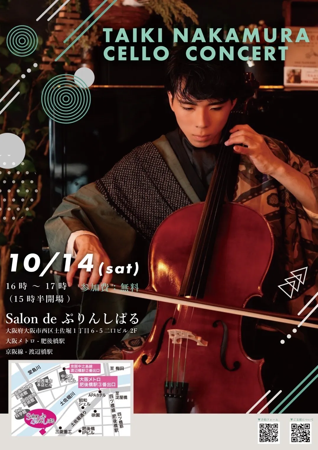 2023/05/07 14:17お久しぶりです!クラウドファンディングを支援していただいた方のおかげで、チェロを購入することができ、日々の練習ができています。ありがとうございます!クラウドファンディングをする目的である、ミニコンサートの日程が決定しました!本番の日程が決まってより気が引き締まっています!緊張してます!是非来てください!!【ミニコンサート詳細】日時:10月14日(土) 18時~19時 (17時半開場予定)場所:Salon de ぷりんしぱる(大阪府大阪市西区土佐堀1丁目6−5 二口ビル 2F)(最寄り駅:大阪メトロ-肥後橋駅、京阪線-渡辺橋駅)マップで見る参加費:無料予約フォーム:https://forms.gle/dAd2TSjMHgzBaVx76(フォームから予約もしくは直接連絡ください!) もっと見る