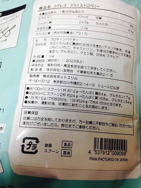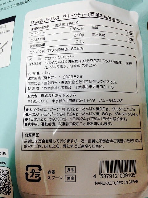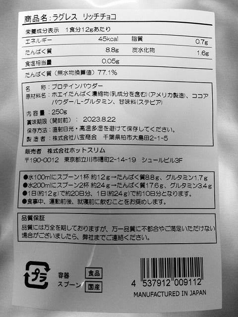 ラグレスプロテイン(製造者:株式会社八宝商会、販売者:株式会社ホットスリム)