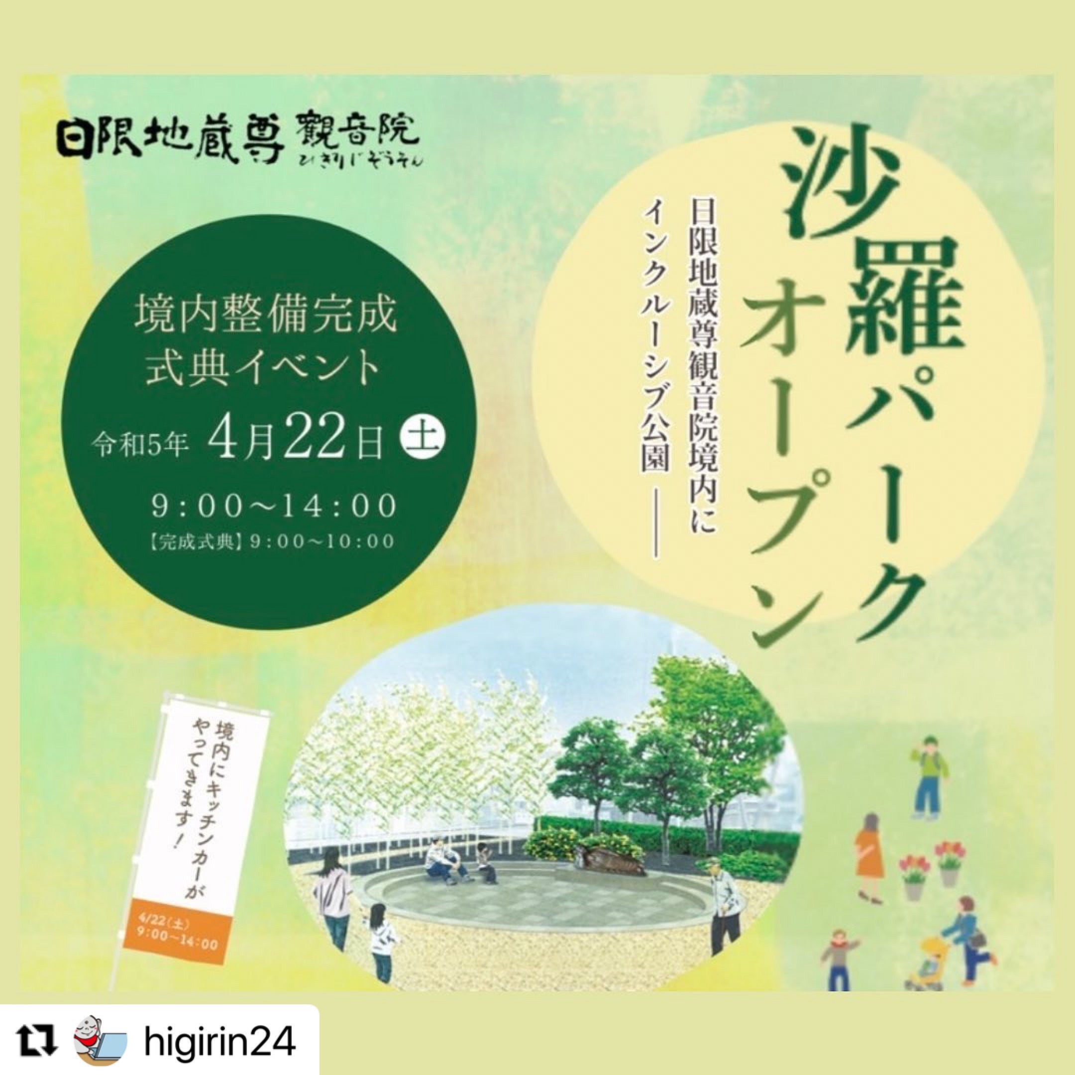 2023/04/21 00:00向井です。みなさま遊んでらっしゃいますか?さて・・・『おえかきネハンズ』を体験できるイベントご紹介です。すでに開催済みですが、宇都宮浄土宗 光琳寺さま(ウェブサイト)にて、涅槃会イベントがございました。2月15日に涅槃会法要とともに、おえかきネハンズを体験していただきました。すでに開催済みで、告知もしました陽岳寺での「ねはんえ」「禅粥」がございました。ご参加いただいたみなさま、ご関心よせていただいたみなさま、ありがとうございました。#『おえかきネハンズ』を体験できるイベント:沙羅パーク 境内整備完成式典イベント4/22 Sat 9:00~14:00@日限地蔵尊 観音院(群馬県桐生市)群馬県桐生市にあります、真言宗豊山派 日限地蔵尊 観音院さまにて、涅槃像の安置された境内パークが完成します。完成記念式典(お寺ワードで落慶式といいますが)に、ご一緒させていただきます。ご縁をいただきました、ありがとうございます観音院さまのウェブサイトはこちら→ jizo24.comInstagramアカウントはこちら→ https://instagram.com/higirin24伽藍では、いま話題のお寺のホテル「宿坊」もございます。みなさまOTERA STAY泊まってみて、ご活用ください。そもそも、お地蔵さんの縁日をしてらしたり、御朱印も人気で、今回のこの企画もお参りされる方のことを考えてのこと。自然と手が合わさります!ぜひお参りください。#Repost @higirin24 with @use.repost・・・日限地蔵尊観音院境内にインクルーシブ公園がオープン!【イベント自体】9:00〜14:00【お寺のゲームブース:屋外テント】10:00〜14:00お寺のボードゲームを遊んだり、お求めいただくことができます。++記念式典:令和5年4月22日(土)9:00〜10:00++当日はワークショップの開催や仏教ボードゲームの体験販売会、キッチンカーのグルメなど、皆様が楽しめるような催しがありますので、お誘い合わせの上是非遊びにおいでください。オープン記念式典はどなたでもご参加いただけ、先着300名には受付にて記念品を贈呈いたします。また、お祝い(5,000円〜)お持ちいただいた方にはインドグッズ詰め合わせの返礼品もご用意しております。※ワークショップは完全予約制となっております。ご予約は0277-45-0066(観音院)までお電話ください。〒376-0034 群馬県桐生市東2丁目13−18 もっと見る