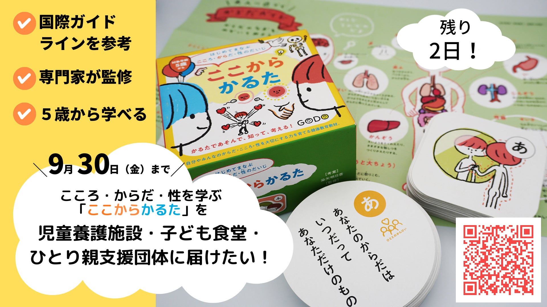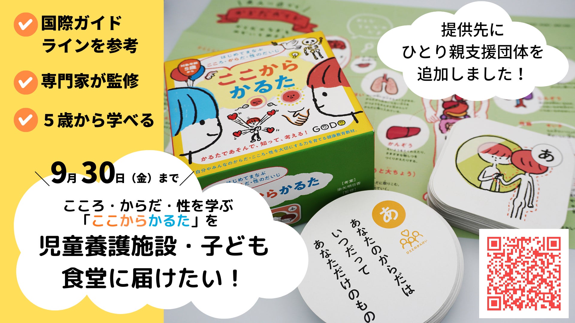 社会問題をクリエイターが分かりやすく伝えるメディア・チャリツモさんに、今回のクラウドファンディングをご紹介いただきました!【応援してください】『ここからかるた』を養護施設やひとり親家庭に届けたいhttps://charitsumo.com/event/22084●ある県の児童養護施設を対象におこなった調査では、18施設中17の施設(94.4%)で過去に性的問題が発生していたことがわかっています。一部では性教育を実施している施設もありますが、実施が難しいと答える施設もすくなくありません。(参考:児童福祉施設における性的問題の実態と対応についての調査)●ひとり親や経済的貧困が虐待につながりやすいという調査結果があったり、ひとり親家庭で性教育のハードルが高いこともわかっています。●チャリツモが制作に関わっているひとり親のための子育て支援サイト「イーヨ」でも、ひとり親家庭でどうやって性教育を教えていいのかわからないという当事者の声は少なくありません。といった社会背景もご紹介いただいています。ちなみに、チャリツモさんはここからかるたの動画を撮影・編集してくださっています。ぜひ、こちらの記事も広めていただけますと幸いです!どうぞよろしくお願いいたします!