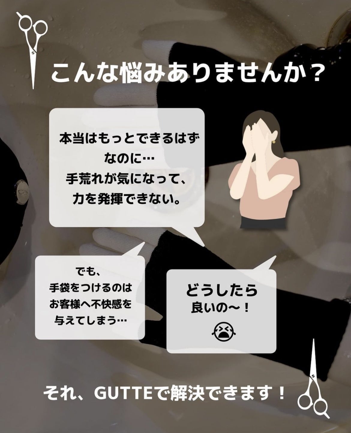 その中で離職する原因として多いのが手荒れです。過去にさかのぼっても「手荒が原因で美容師をあきらめたんですよ…」という声をよく聞きます。
