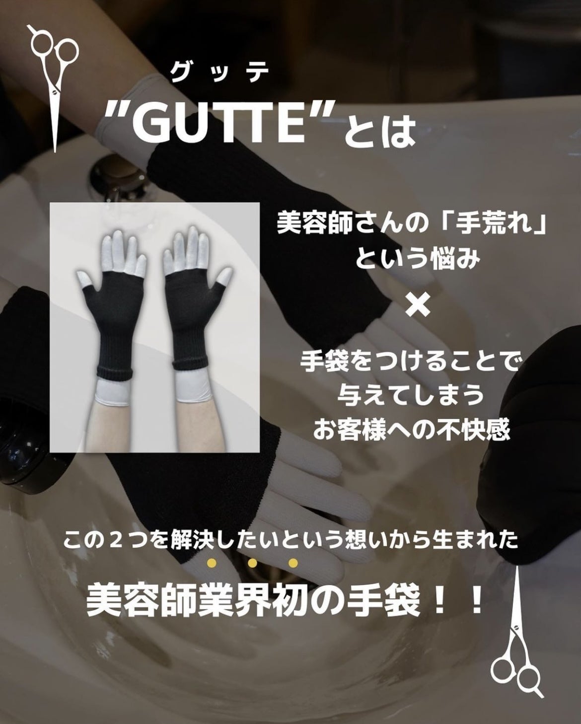 使用方法につきましては、ゴム手袋を着用した上にGUTTEを濡れた状態で着用しシャンプーなどを行います。