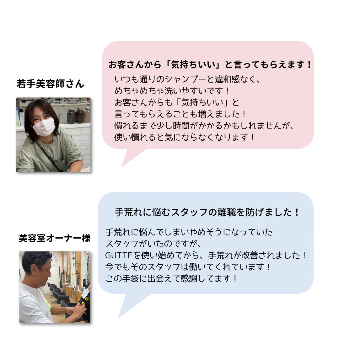 ※検証する協力店の美容室にて、酷い手荒れでドクターストップがかかっていた美容師の手を改善した実績あり。