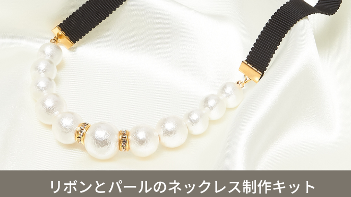 リボンとパールのネックレス制作キット(色違い3個セット)、ビデオレター 6,000円