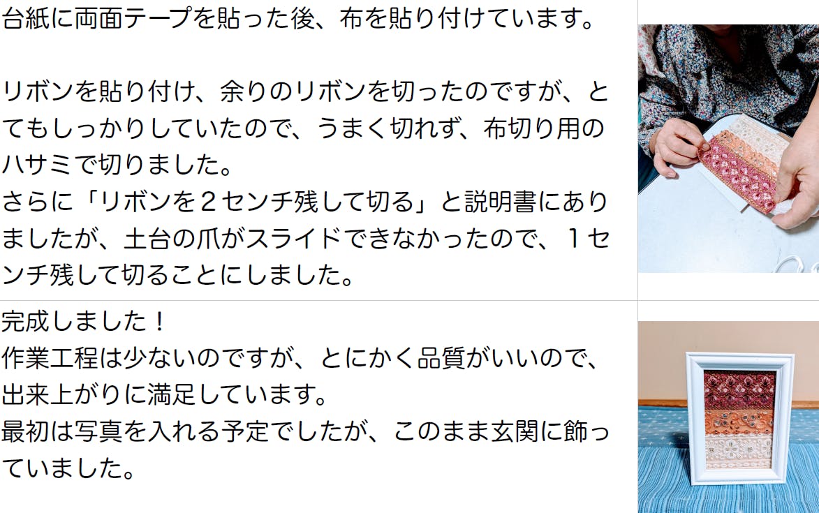 開封して材料を出し、母に見せた所、リボンの品の良さ