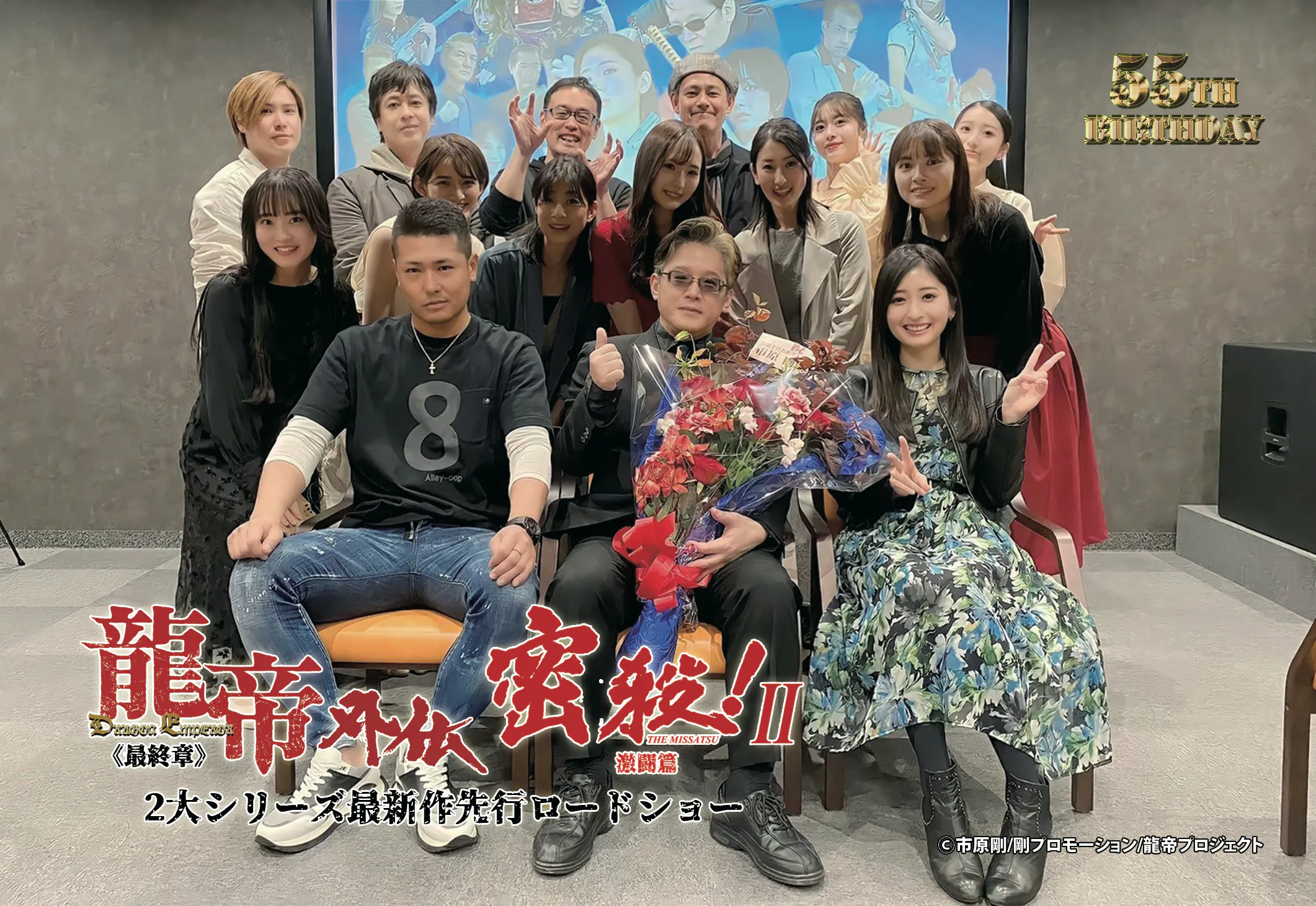 2023/04/27 13:322023年4月22日(土)に開催された先行ロードショーに、たくさんのご来場ありがとうございました。このたび、本公開の上映スケジュールが確定しましたので、お知らせいたします。映画『龍帝外伝《最終章》』×『密殺!Ⅱ THE MISSATSU 激闘篇』スペシャルロードショー開催決定!!◎日時:2023年6月3日(土)・4日(日)開場14:15/開演14:30~終演17:30予定2023年6月5日(月)~9日(金)開場18:15/開演18:30~終演21:30予定◎会場:シネマハウス大塚豊島区巣鴨4-7-4-101JR大塚駅北口下車徒歩7分(折戸通り 都立文京高校正門前)◎イベント内容映画『龍帝外伝《最終章》』(77分)、『密殺!Ⅱ THE MISSATSU 激闘篇』(61分)2本立て上映終了後、出演者トークショーあり。◎登壇予定者:市原剛(『龍帝』シリーズ原作・監督)、岡田彩花(『龍帝外伝《最終章》』主演・主題歌)、ほか龍帝組レギュラーキャスト現在、調整中。確定次第、告知いたします。※体調不良等により、出演者は予告なく変更になる場合もあります。あらかじめ、ご了承ください。◎チケット料金:一律2,500円(定員50名)事前予約はコチラ▷https://ryuteigaiden.peatix.com/【お問合せ先】龍帝プロジェクト事務局gosproject.films.llc@gmail.com もっと見る