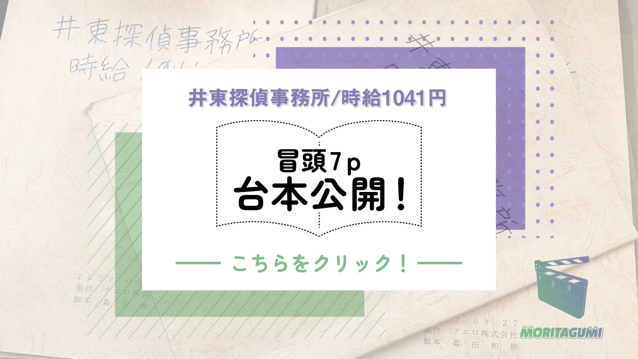 「井東探偵事務所/時給1041円」台本の冒頭を公開します!!