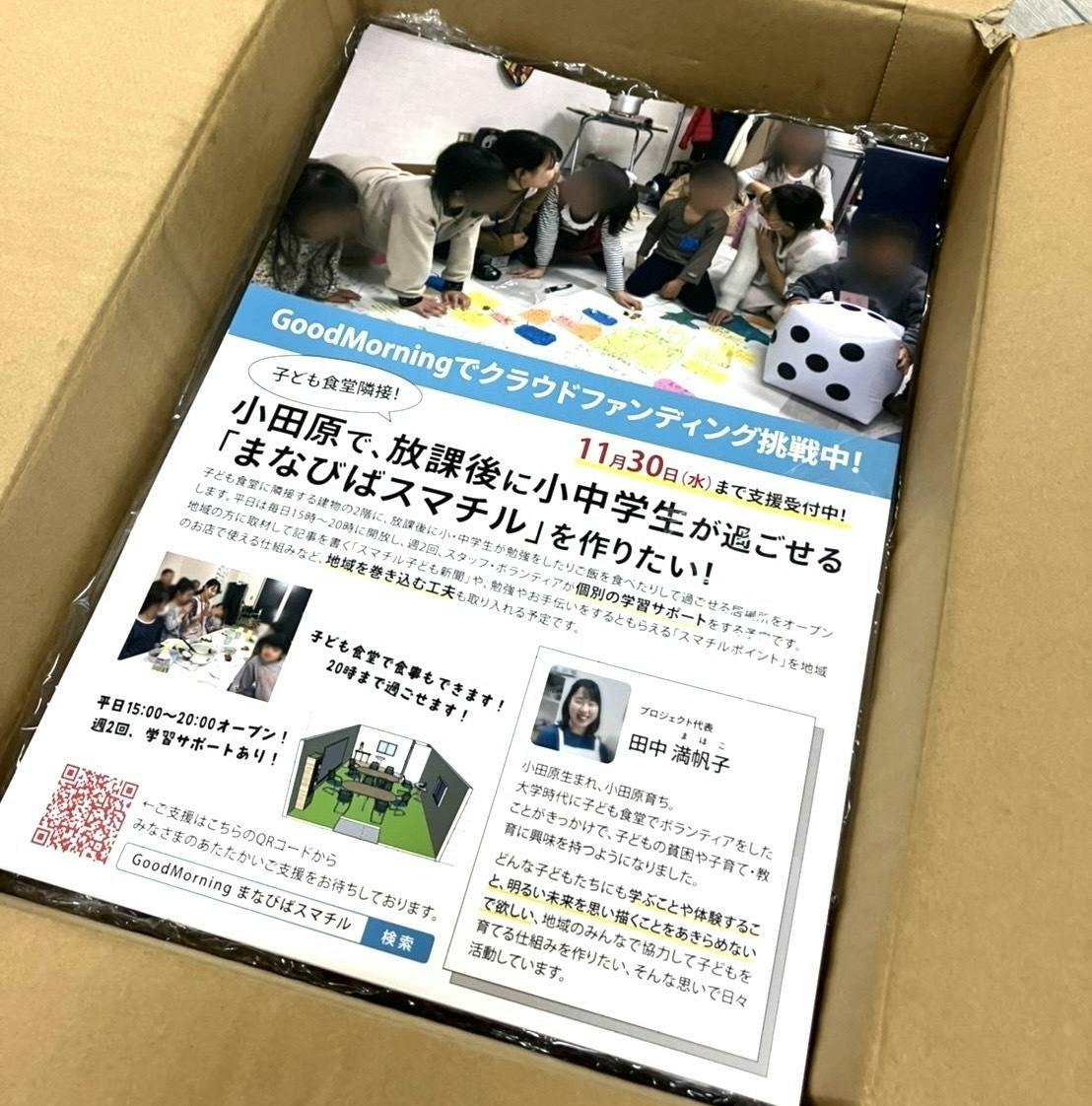 この度、まなびばスマチルの活動をもっとたくさんの方に知っていただくために、クラウドファンディングのチラシを作成しました。チラシを活用して宣伝していきたいと思います。