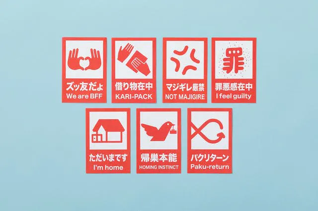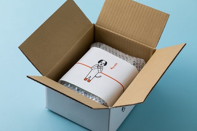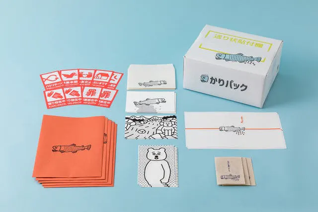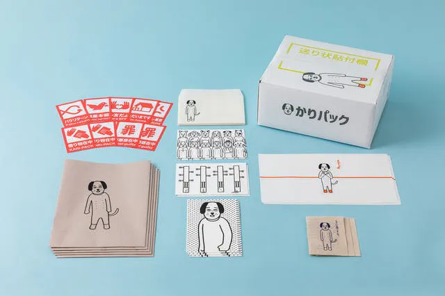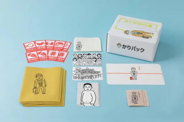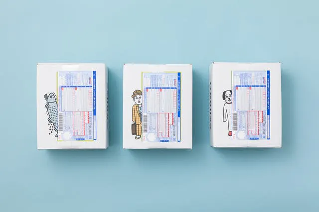 外箱に貼れる宅配便風の荷札シールも用意。持ち主と最初にコミュニケーションするツールだからこそ、パロディというわかりやすいユーモアで心をほぐします。