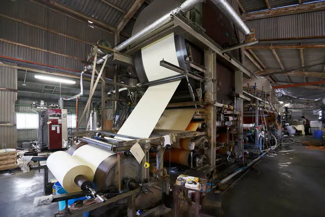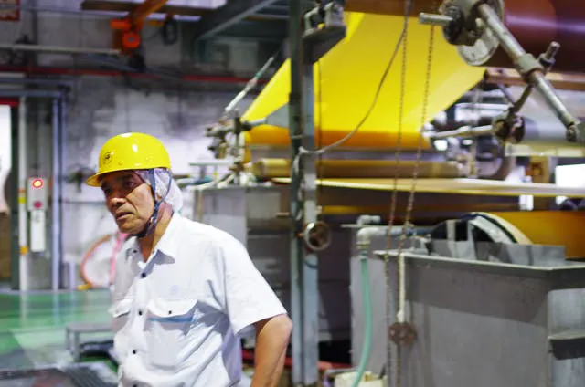 機械漉き和紙の抄紙マシーン。日本古来の製法を活かしながらも、量産が可能。