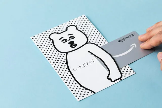 借りていたモノをそのまま返すだけではちょっと…。そんなときはギフトカードをいっしょに入れてみては?ギフトカードホルダーを使えば、各キャラクターがアマゾンカードなどの具体的な「お気持ち」を小脇に抱えて届けてくれます。