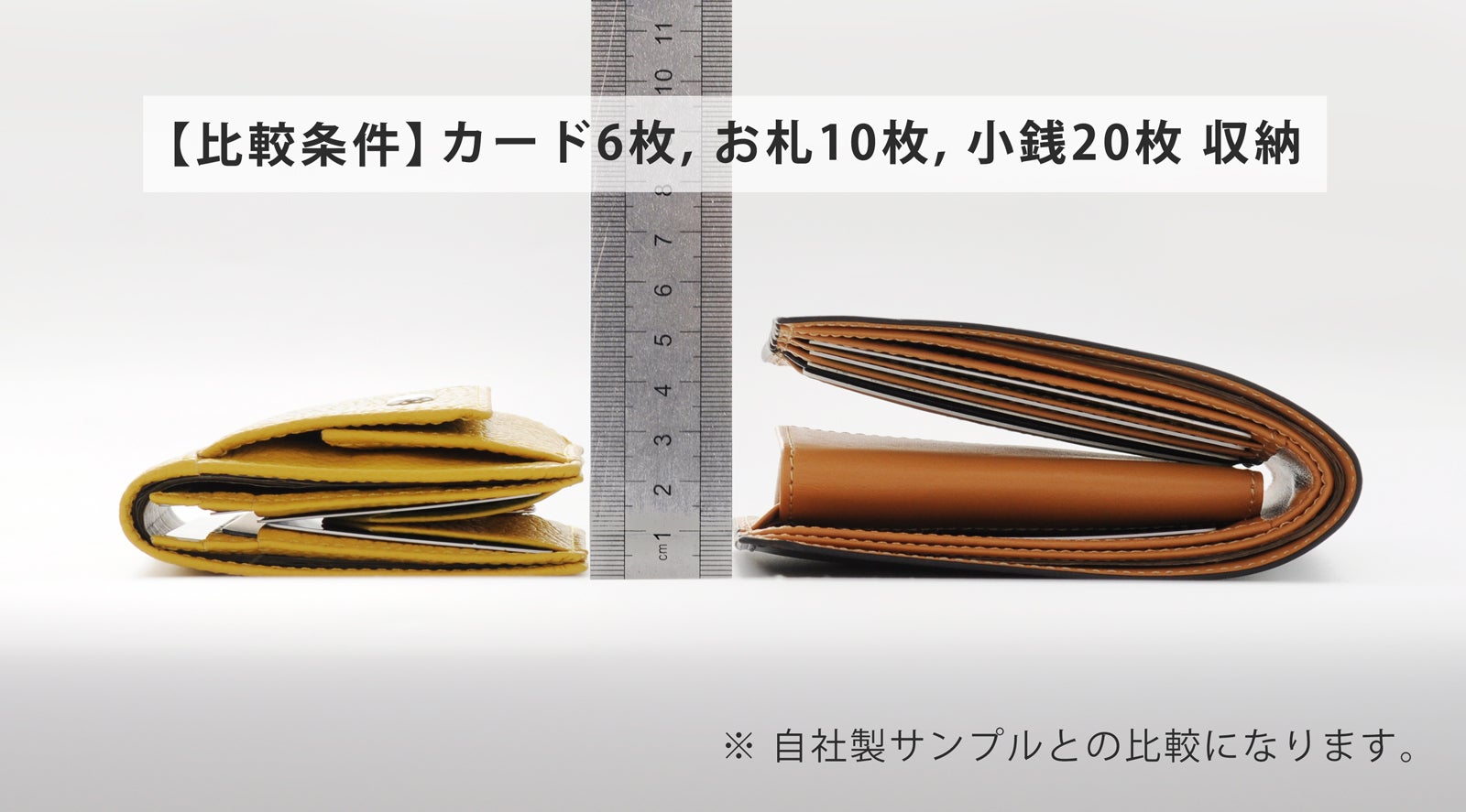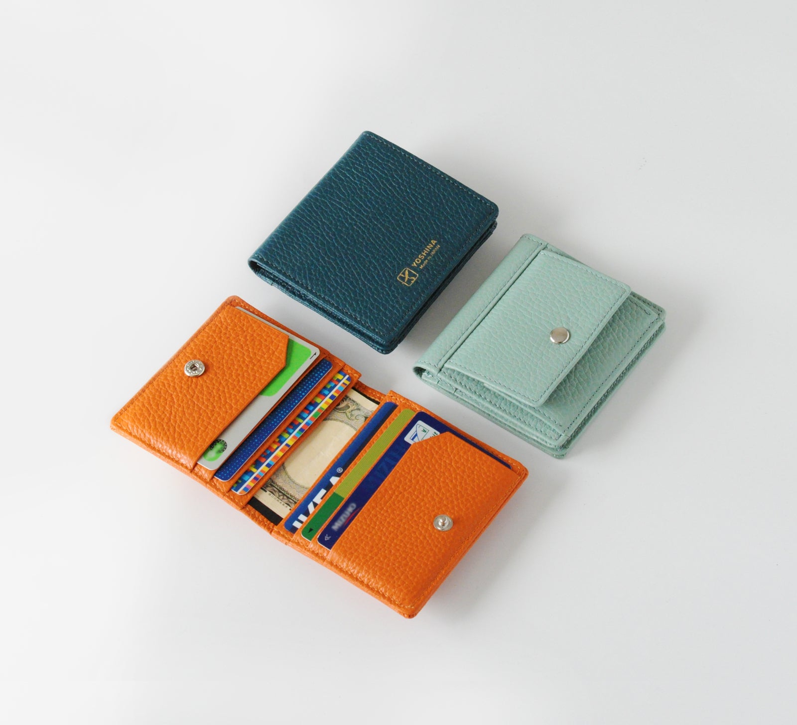 YOSHINAはこれらの声と問題点に注目し、色々な形で試作を行い、「コンパクトさ」と「使いやすさ」を両立させたYOSHINA二つ折り財布を創り上げました。