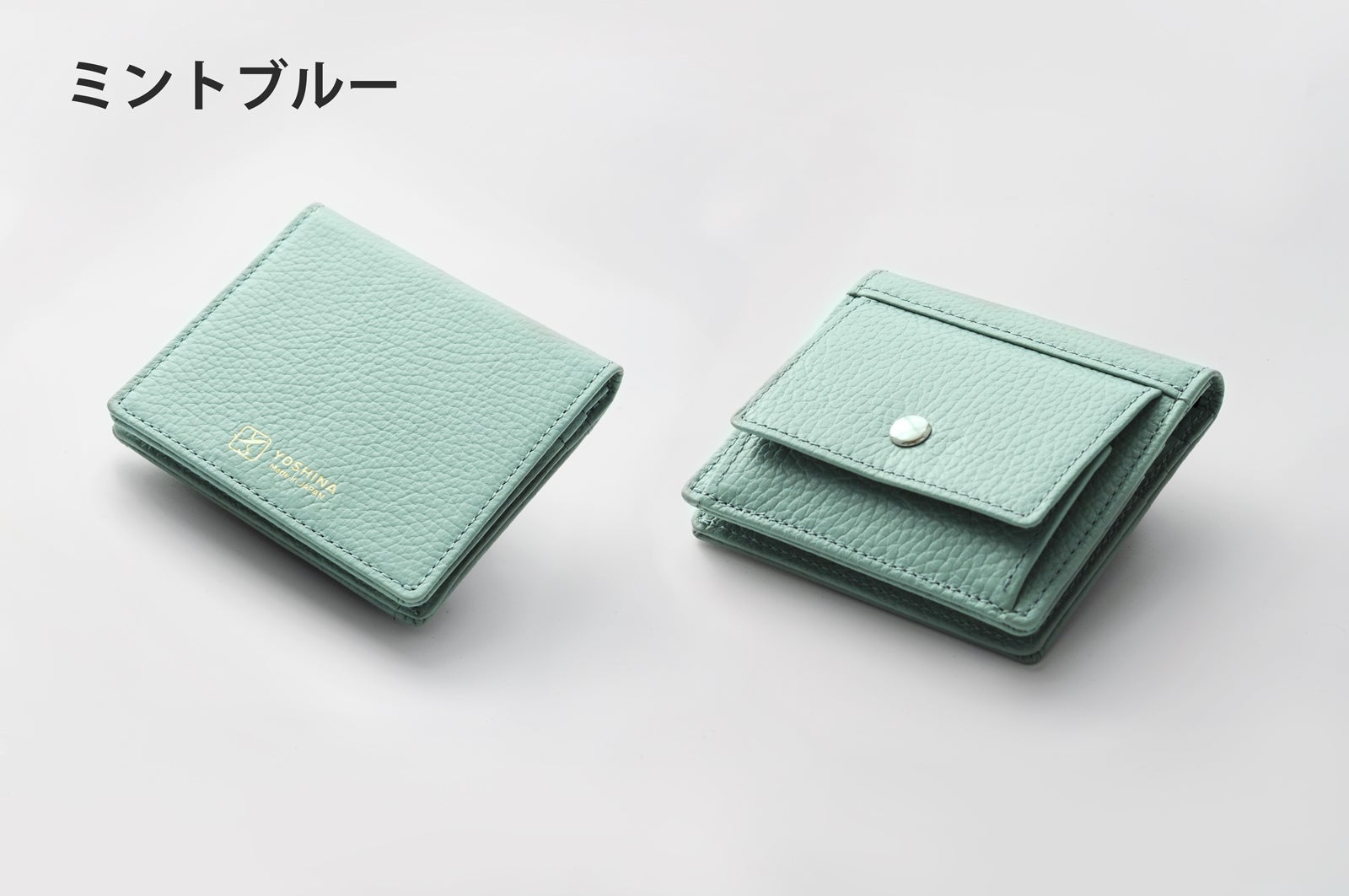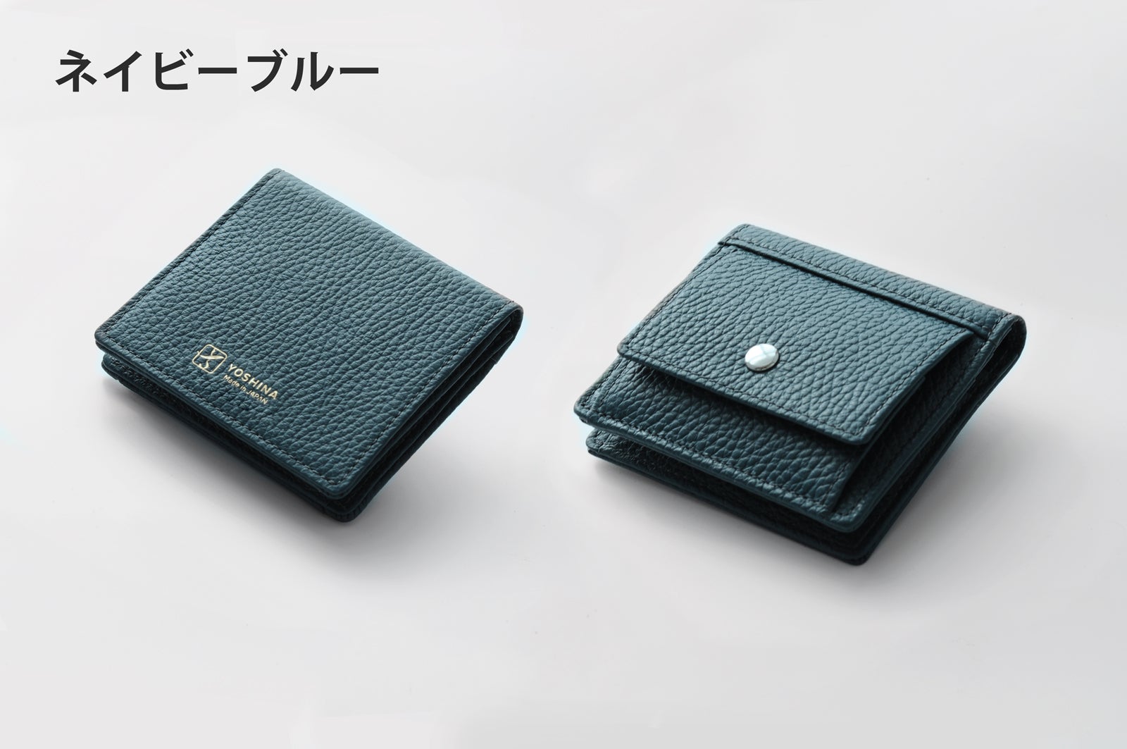 YOSHINA二つ折り財布は傷つきにくく、汚れにくいイタリアレザーと色移りしにくい顔料仕上げの国産豚革を贅沢に使用しています。異なる2種類の革を貼り付けることで、革一枚のみで作成されたものと比べ、「丈夫さ」だけではなく「しなやかさ」も同時に実現させました。