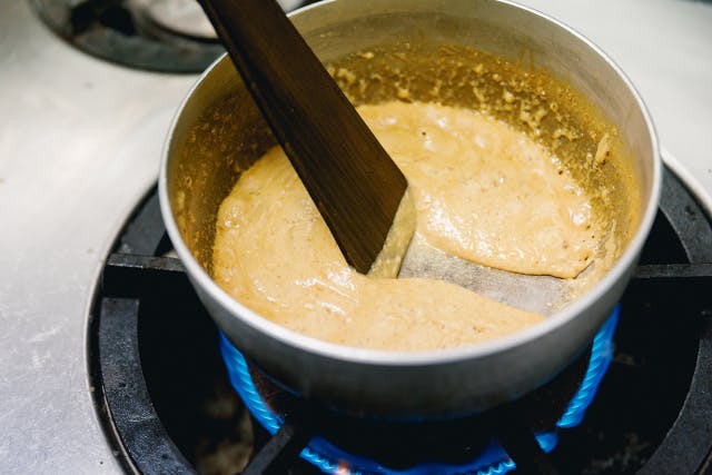 ヘラの表面には輪島塗に使われる漆を使った漆塗りがされています。現在も漆に勝る合成塗料は開発されていないと言われており、漆塗りを行うことで、木内部への水分や油分の侵入を防ぐことができ、耐久、耐水、断熱、防腐性が非常に高くなります。