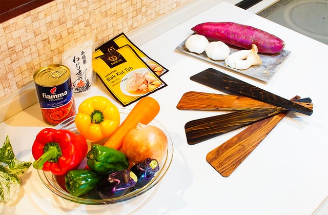 輪島塗の職人が1日に100を超える器の下地の作業に使っているヘラを料理用のヘラに応用。古来より職人が作業をしやすいように角度や薄さを考えて作りあげられたこだわりのフォルムは、料理の際にもその特性が十分に発揮され、使い勝手がとてもいいフォルムになっています。