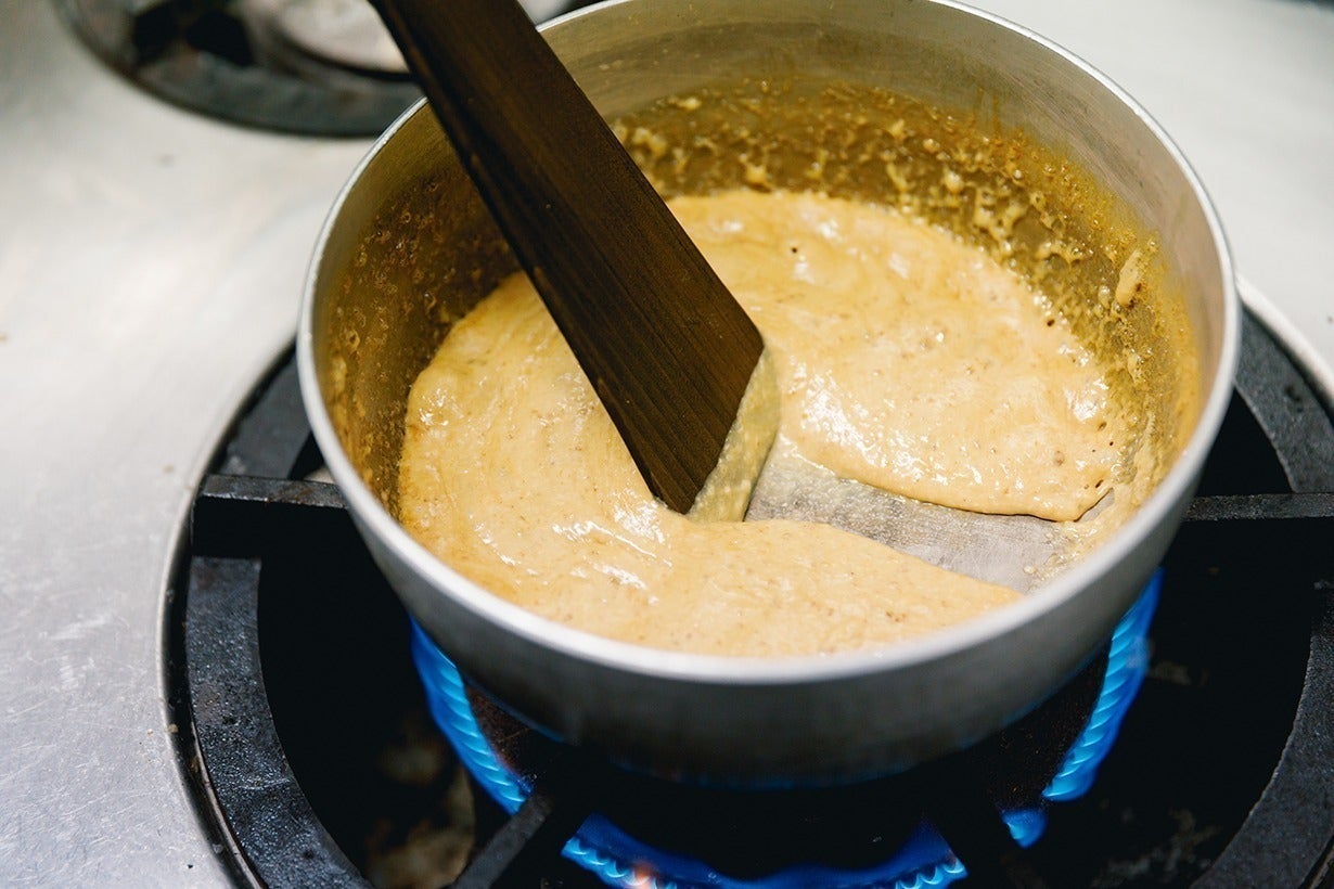 ヘラの表面には輪島塗に使われる漆を使った漆塗りがされています。現在も漆に勝る合成塗料は開発されていないと言われており、漆塗りを行うことで、木内部への水分や油分の侵入を防ぐことができ、耐久、耐水、断熱、防腐性が非常に高くなります。