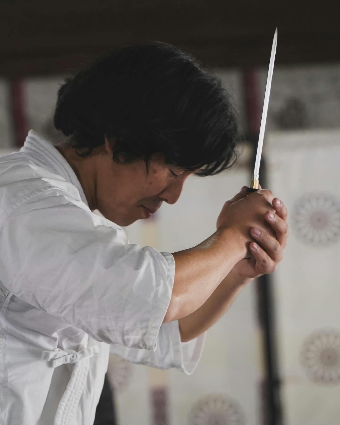 「剣と向き合う会」とは、宝剣鍛冶 根津光啓が⽣み出した剣を実際に⼿に取っていただき、⾃分⾃⾝と向き合っていただく会です。