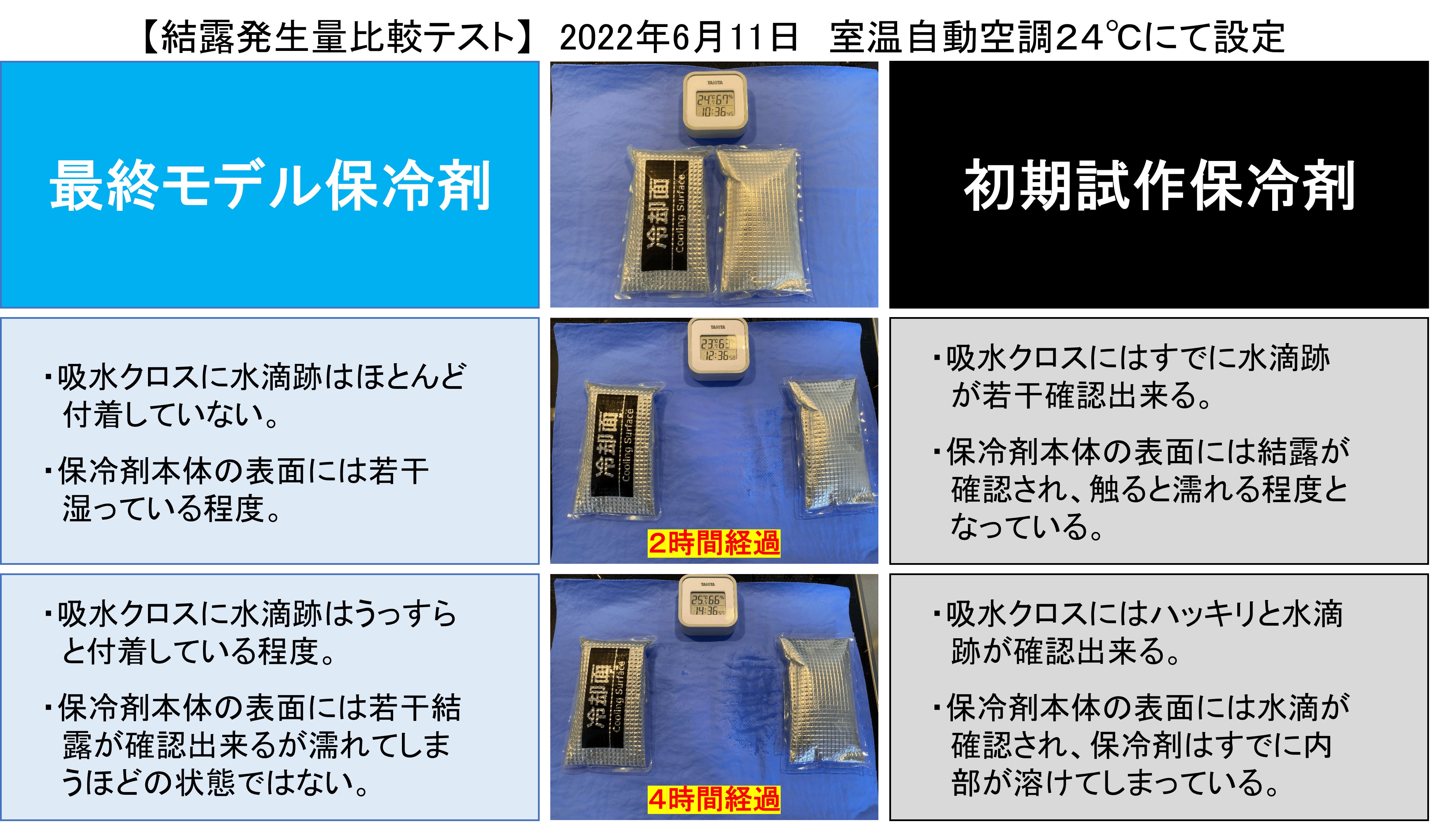 尚、保冷剤を工夫することで結露の抑止もクリアすることが出来ました。