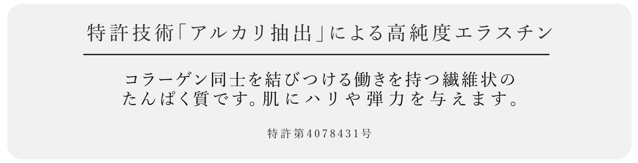 カプセル:再生因子とエラスチンの成分が胃酸でダメージを受けないよう、腸で溶ける腸溶カプセルを採用しています。