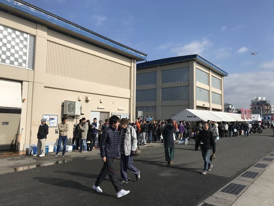 トップの写真のようにオープンまで並んで頂き、多い時には数百人のお客様の行列となります。