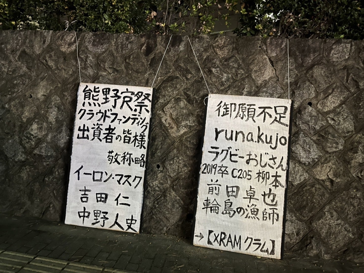 2022/12/05 16:40どうも!アルティメット帰寮です!!!ついに寮祭が完結いたしました!!10日間の長きにわたるお祭りもついにひと段落。いよいよ寮祭の振り返りの時期となります。まずはじめに、我々の開催した熊野寮祭という祭りにご支援をしてくださった方々、本当にありがとうございました。本活動報告に載せさせていただいている画像は、このクラウドファンディングの返礼品として、ささやかながら我々にできる、我々らしいお礼として立てさせていただいたタテカンとなっております。この京都大学熊野寮という世界で一番自由で魅力的な場所の一端を担う我々として少しでも皆様に楽しんでいただけたのなら、これほどまでにうれしいことはありません。本当にありがとうございました。さて、それでは、、、といつもならば〆に入るところですが、このクラウドファンディングを任されて、そして熊野寮祭という大きなイベントの運営に加わらせていただいた一員として少々駄文ながら、つらつらと文章を添えさせていただければと思います。場所をわきまえて自分語りをしろという声も聞こえてきそうですが、これも一種の「活動報告」であると信じて書かせていただきます。〈クラウドファンディング後記〉 はい。ついに熊野寮祭が完結いたしました、、、長いようで短いようで、なんだかずっと夢を見ているかのような10日間でした。この祭りを通して、僕自身も様々な大役を任される運びとなり、時には叱咤され、時には叱り飛ばされ、そして時には上回生から痛烈な批判をいただき、、、、あれ?俺、叱られてばっかじゃね??なんていうのは、まあ冗談なわけですが。そんなこんなで身の丈以上の仕事をやらせていただけました。 そんな中で僕が任された仕事のうち、一番最初に取り組むことになったのがクラウドファンディングページの文章作成です。実をいうと、僕の人生の中で1,2を争うくらいにいい文章が書けたと思っているんです。特に「最後に」のところ。今読んでも自分の文章にほれぼれします。そう、僕は熊野寮祭に「カオス・自由・無謀 」の無限の可能性を感じているんです。 皆さんも胸は熱くなりませんか?無数の職員に囲まれて軽トラの上で愛を叫んだり、みんなでバカ騒ぎをしながらファミマで25万円溶かしてみたり、ステージでマイクを握りしめながら大好きな同期とライブをしたり。冒頭でも書いたように、全部「夢」のようでした。どれもこれも本当だったらあり得ないような体験ばかりです。だって、1年前の僕に「お前は一年後、トラメガ持って機動隊とバトってるぞ」なんて言っても絶対信じないですもん。でもそんなあり得ないことができてしまう。だってここが。此処こそが世界で最もカオスで自由で無謀な場所だから。 振り返れば僕たちは今年の寮祭では先頭に立ち、大量のワガママを言い、上回生の力を数え切れないほど借りてきました。いえ、今回直接的に手を貸してくださった先輩方だけではありません。この祭りは、僕たちが顔も知らないようなとんでもない数の先輩方が築き上げてきた伝統と歴史の上の"カオス"なのです。ならば、僕たちのするべきことは何なのか。答えは単純です。「繋ぐ」こと。きっとこれから先凝り固まっていくであろう僕たちの脳みそでは想像もつかないことを成し遂げるであろう後輩たちに、この場所を遺し続ける事。それがこの場所に住む僕たちの義務であり、誇りである。そう僕は信じています。 さて、長くなったので最後に一つだけ。この活動報告の活字の羅列を飽きもせずに読んでくださっている皆様はきっと熊野寮祭に何らかの強い関心を持ってくださっている方でしょう。そんな皆様に、僕から心よりのお礼と、そしてこんな無謀で愉快なこの場所を応援してほしい。そんなお願いをして、この文章を締めさせていただきたいと思います。えー、、、はい、勢いで文章を書き始めたら思いのほかボリューミーになってビックリしております。はい。それでは、今度は、活動報告の味気ない文章上ではなく、熊野寮のロビーにて、直にたっくさん面白い話をしましょう!僕を始め、熊野寮はいつでも皆さんの「カオス」を待っております。文:アルティメット帰寮 もっと見る寮祭やってます!!! vol.3