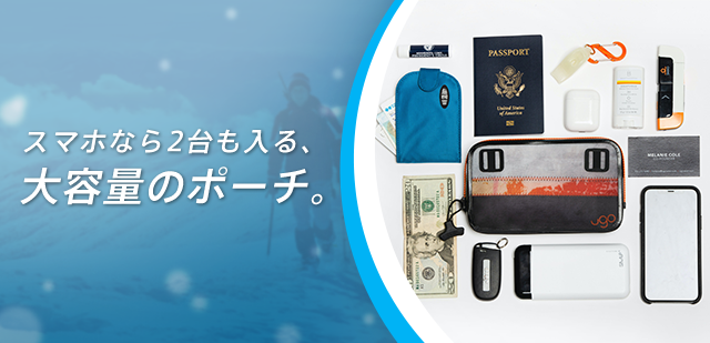 【ugo PHONE2.0】は一般的なスマホなら2台も入る大容量のポーチです。