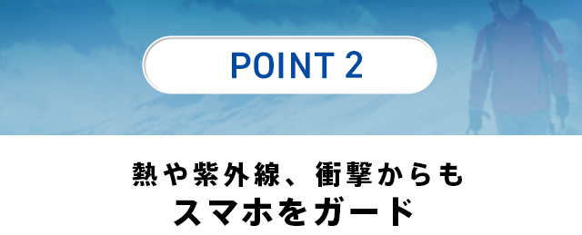 水や雪はもちろん、紫外線や熱、落とした時の衝撃からもあなたの大事なスマホをばっちりガードします。