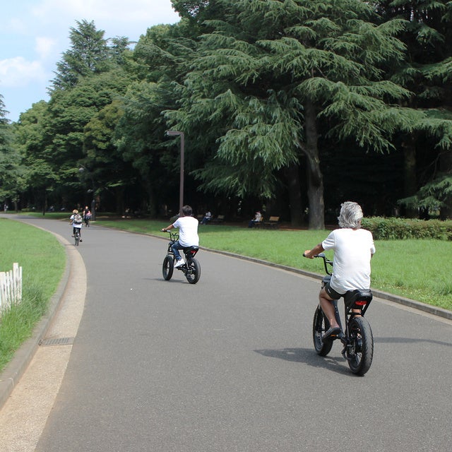 余談ですが、私達のオフィスがある東京(渋谷地区付近)の街は、地名を見ればわかるように、周りには「山」「谷」「坂」が付く地名が多く、意外にもアップダウンも激しい。バイクのテストするには最高の地域… 東京/山の手地域はそんな街です。まぁ全国的に未舗装路も少ないので、舗装路(ターマック)専用の方が合理的と思い、タイヤもKENDA社に別注した20"X4"のロード用カットスリック・ファットタイヤ にしました。坂道が多い街には最適なeBikeです。