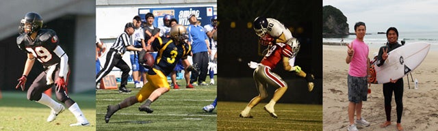 中学生よりアメリカンフットボールをはじめ、高校日本一・関東大学1部リーグでプレー。一昨年まで、日本の最上位に位置する社会人アメリカンフットボールリーグ「Xリーグ」1部リーグの、富士ゼロックスミネルヴァAFC(現、富士フイルムミネルヴァAFC)に所属。ディフェンス・コーナーバックとして活躍、1年前に引退。意外な特技としてスノーボード、ウェイクボードなどもやります。もちろん、嵐の試合も見にいきます!