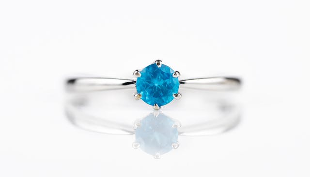 美しい海のような青をもつ希少な宝石で、ネオンカラーのグリーンがかったブルーを発色するのは、宝石の中でパライバトルマリンと、このアパタイトのみといわれています。