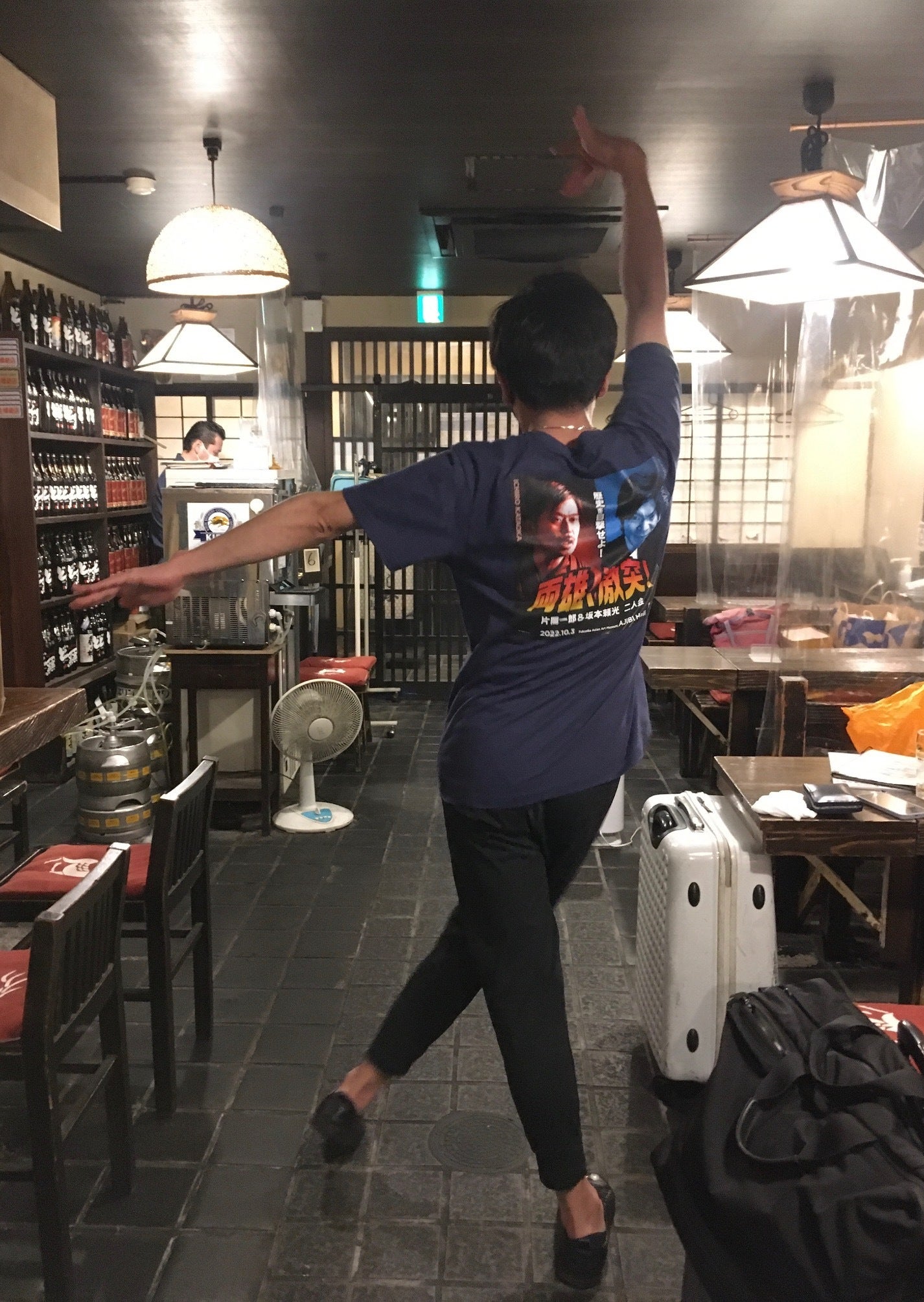 オリジナルTシャツお披露目&公演の空気を伝える返礼品をご用意10/3の公演では、完成したクラウドファンディング限定オリジナルTシャツのお披露目もしました!片岡一郎さん、坂本頼光さんにご無理を言って、当日のトークコーナーでは、出来上がったオリジナルTシャツをそれぞれ着て、舞台に上がっていただきました。写真は、終演後、おでん屋でポーズを取ってくださったモデル・坂本頼光先生です。頼光さんが着用されているのが、インディゴのLサイズです!このほか、ヴァーガンディー(赤)▽バニラホワイト▽ミックスグレー▽黒の計5色、S~Lの4サイズからお選びいただけます!このほか、・公演の模様を写真を織り交ぜて、詳細に報告する「公演詳細レポート」(A4小冊子)・10/3公演での片岡、坂本両弁士による「豪傑児雷也」の掛け合い活弁のライブ音源CD(映像は付きません)など、公演当日の空気を感じていただける返礼品や・片岡、坂本両弁士への質問動画などなどの返礼品をご用意しています!ぜひ、楽しみながら、活弁普及のため、ご支援いただけましたら幸いです。また、既にご支援いただいている皆さまは、返礼品の到着を楽しみにお待ちいただければ幸いです!現在、鋭意、制作を進めております!博多活弁パラダイス実行委員会上村 里花