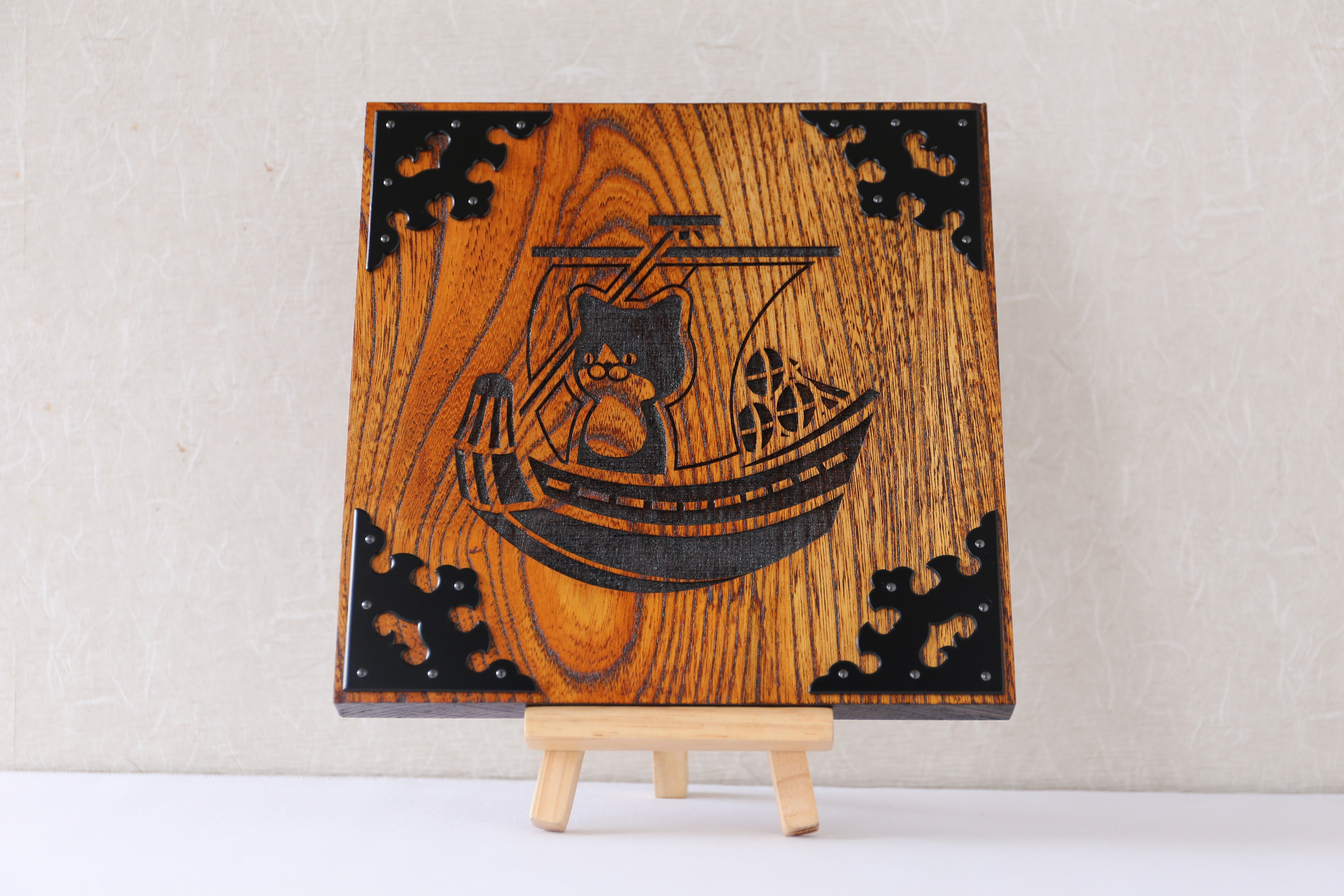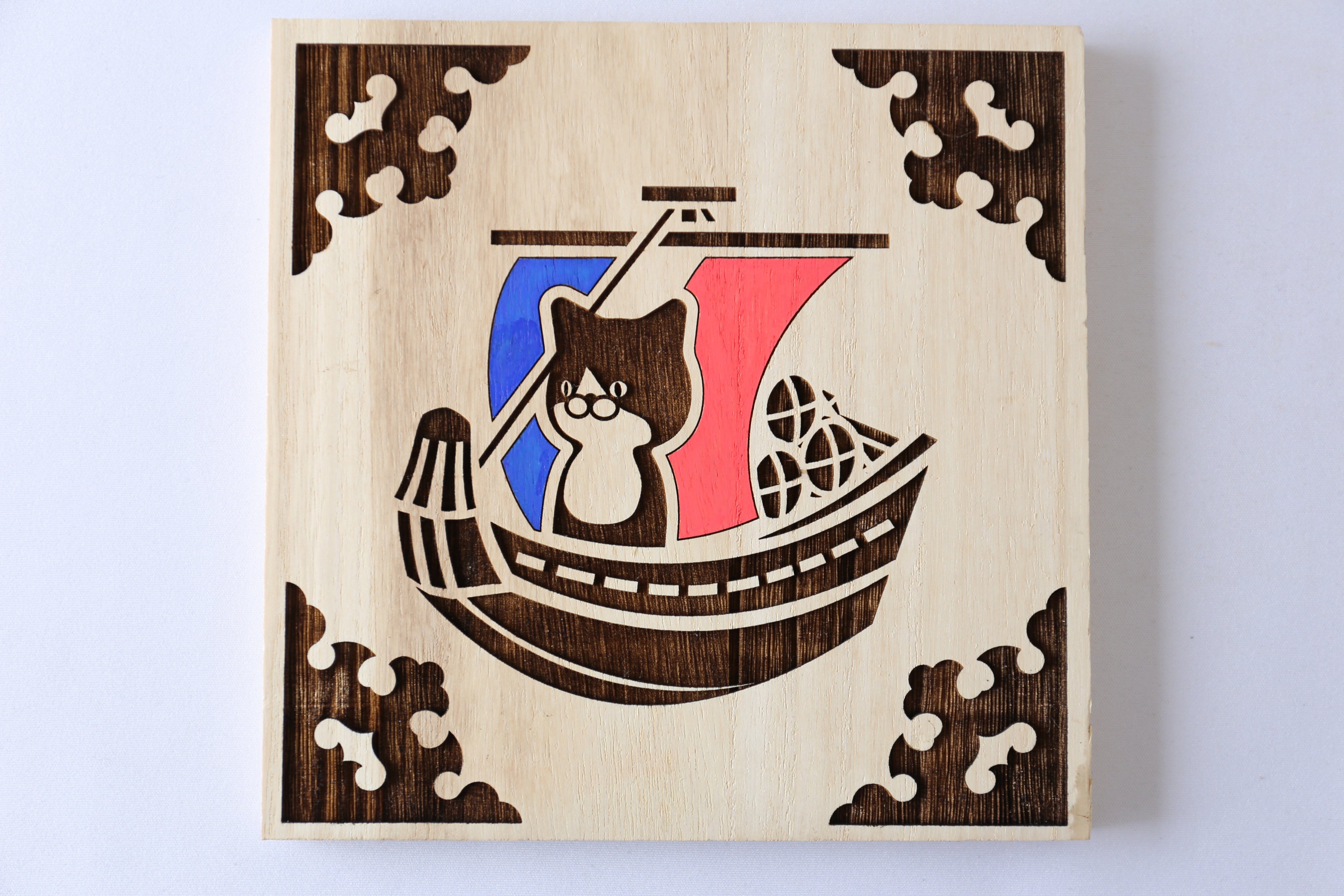 北前船に乗ったねこけしをレーザー彫刻したプレートです。
