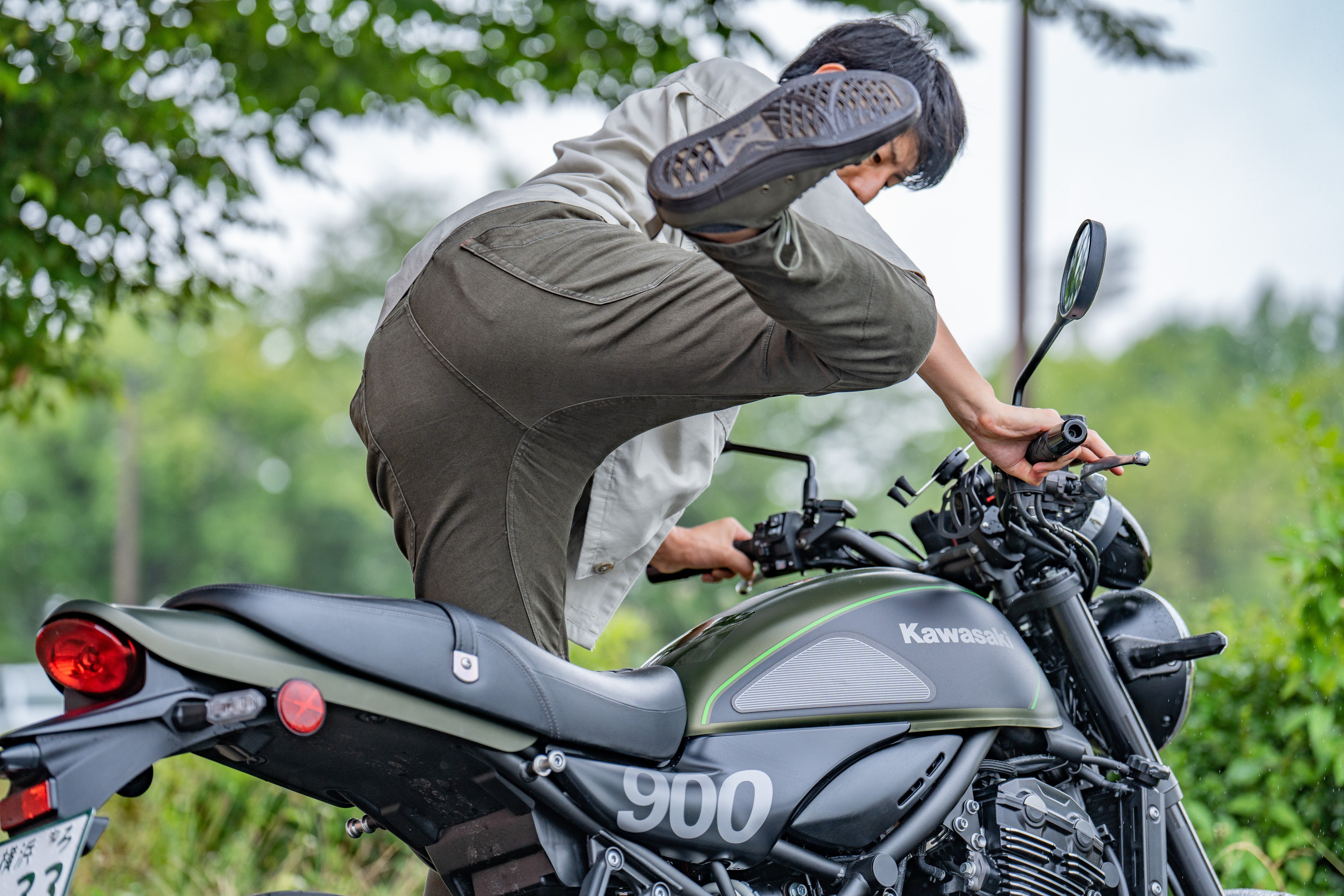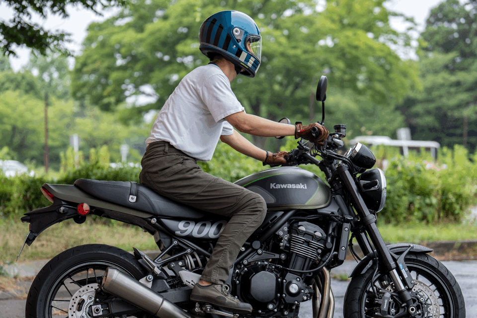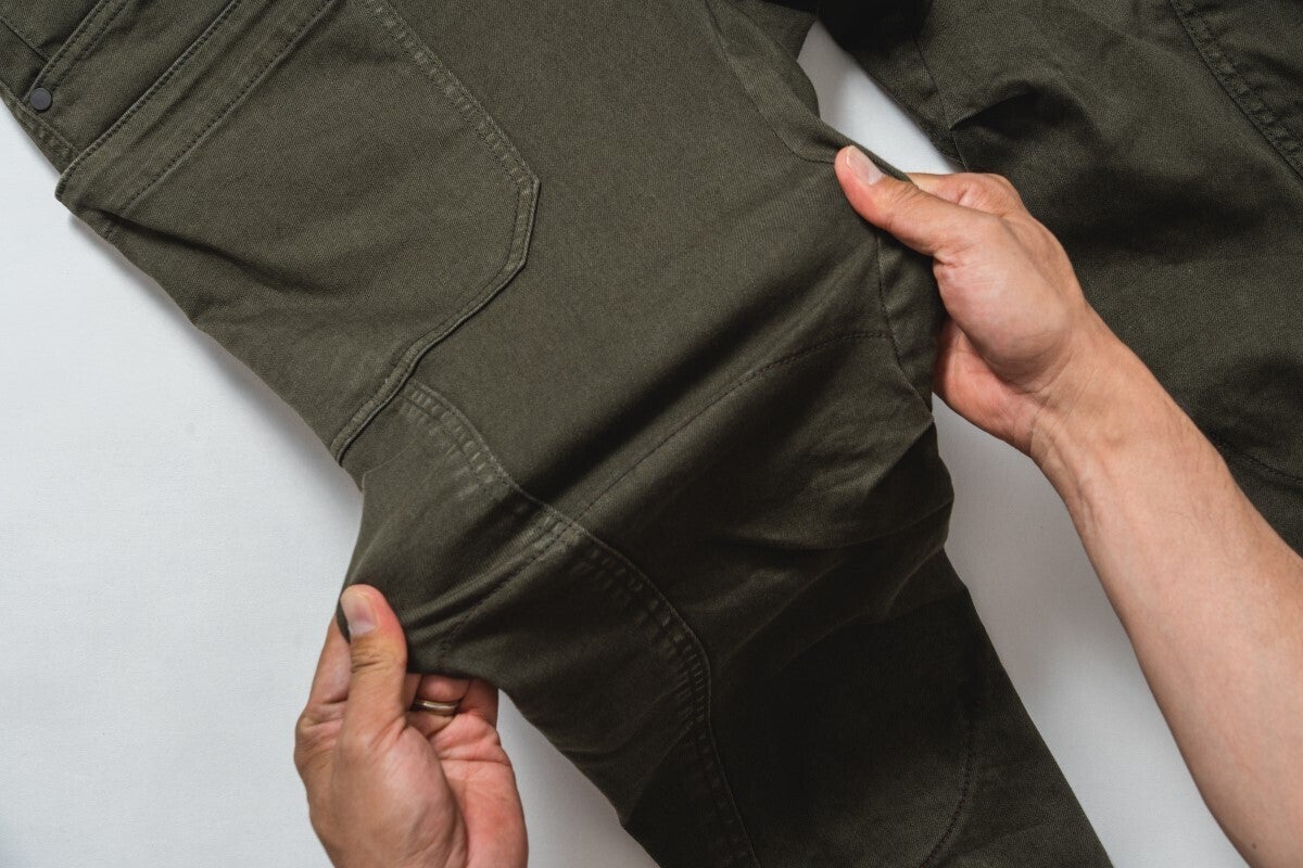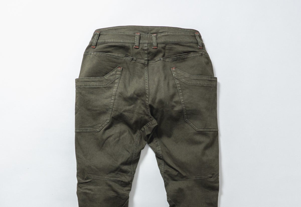 プロテクターを入れていても違和感なく穿くことができるRD-902ライディングキャンプパンツ。まるでプロテクターが入っていないかのようなスタイルです。