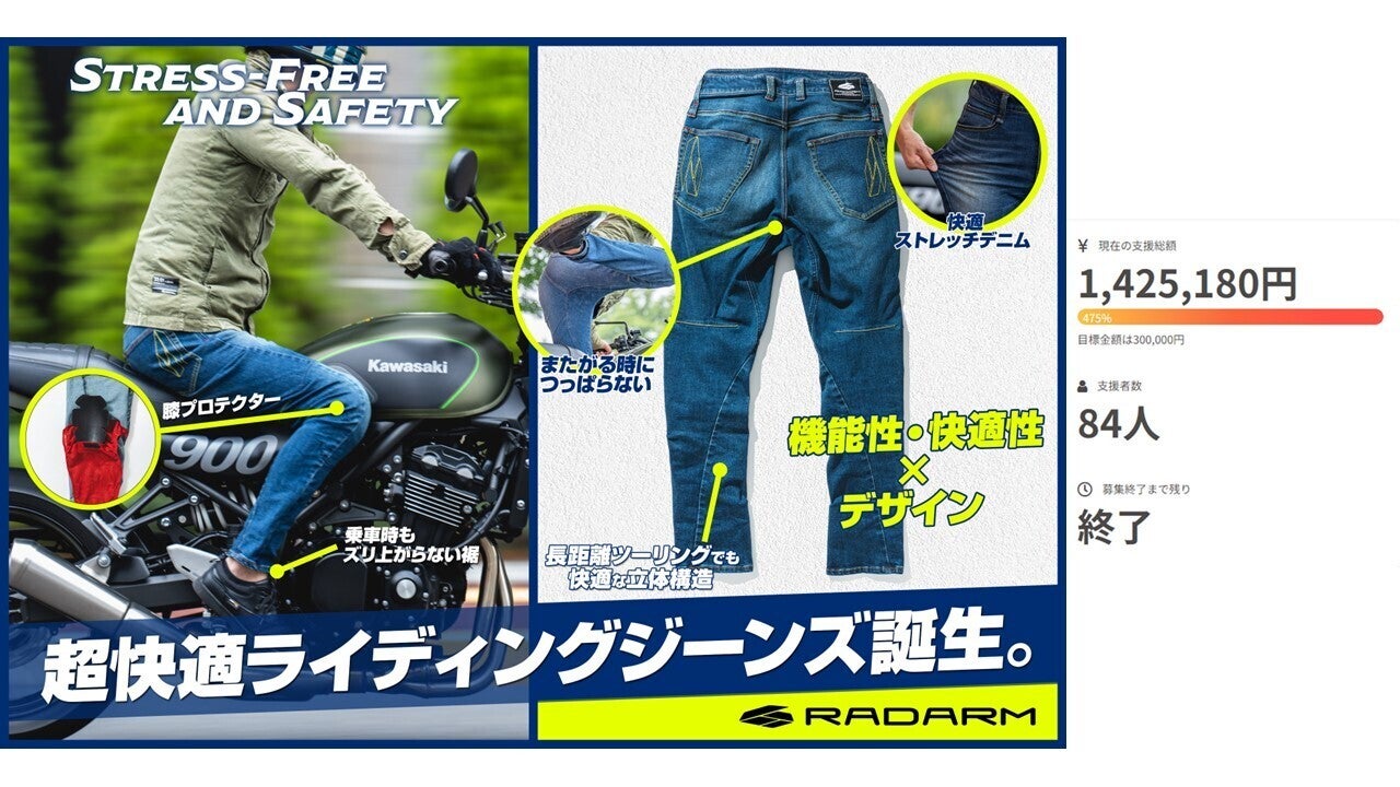 2023/08/01 12:36皆様こんにちは!!RADARMの栗原です。7月31日をもちましてRD-902ライディングキャンプパンツのクラウドファンディングが無事に終了いたしました。合計142名、1,929,500円と非常に多くの方にご支援いただけたこと、本当に嬉しく感じております。皆様本当にありがとうございました。商品の発送は9月上旬を予定しておりますが、詳しい発送日については改めてご連絡をさせていただきます。これからも我々RADARMは、皆様のバイクライフに貢献出来るようなライディングギアを企画してまいりますので、皆様どうぞよろしくお願い致します。本当に多くのご支援をいただき、誠にありがとうございました。 もっと見る