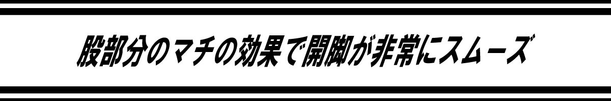 また、停車と発進の際に生じる足の稼働や、高速走行などで前傾姿勢のまま膝を曲げた姿勢が続いても、生地がしっかり伸びてくれるので窮屈になりません。
