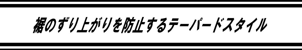いかがでしょう?裾がずり上がっていないことがお分かりいただけますでしょうか?